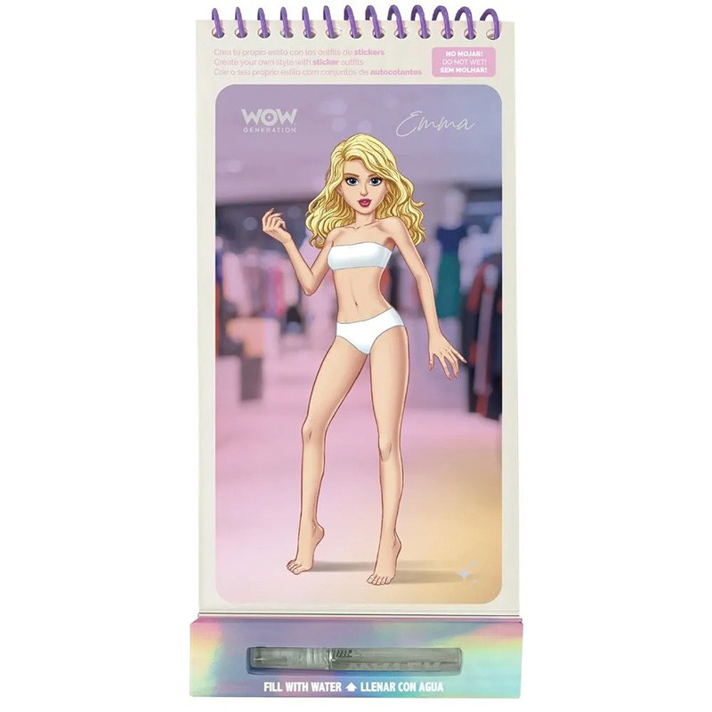 10 non-waterproof WOW Girls stencils. 10 sheets of stickers, with clothes and accessories in color.