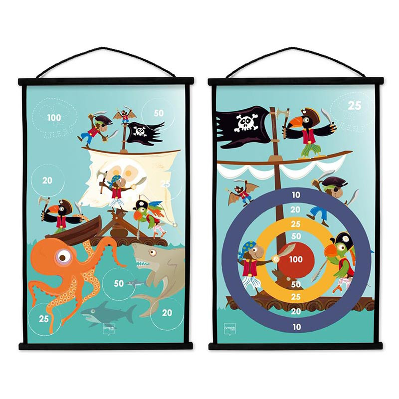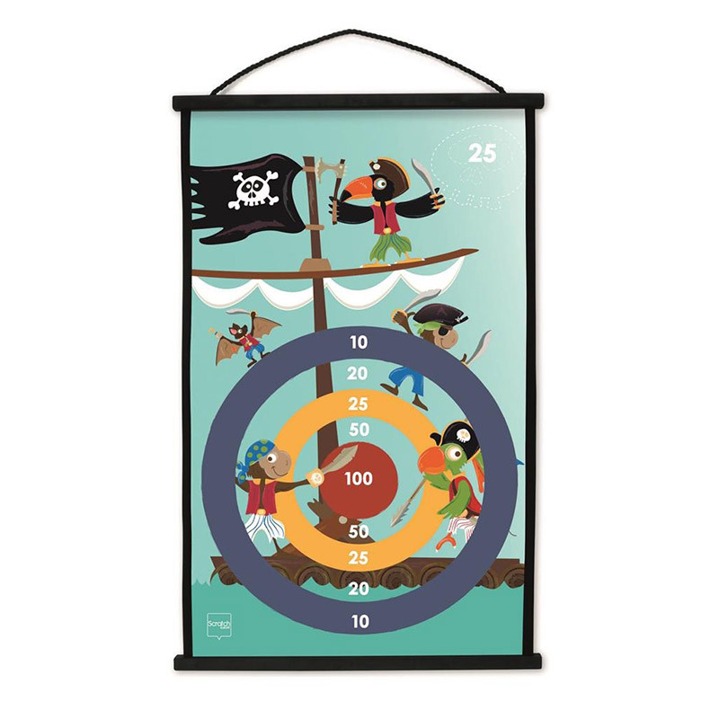 2-Sided Magnetic Scratch Target with 6 Darts-Pirates (5+ years).