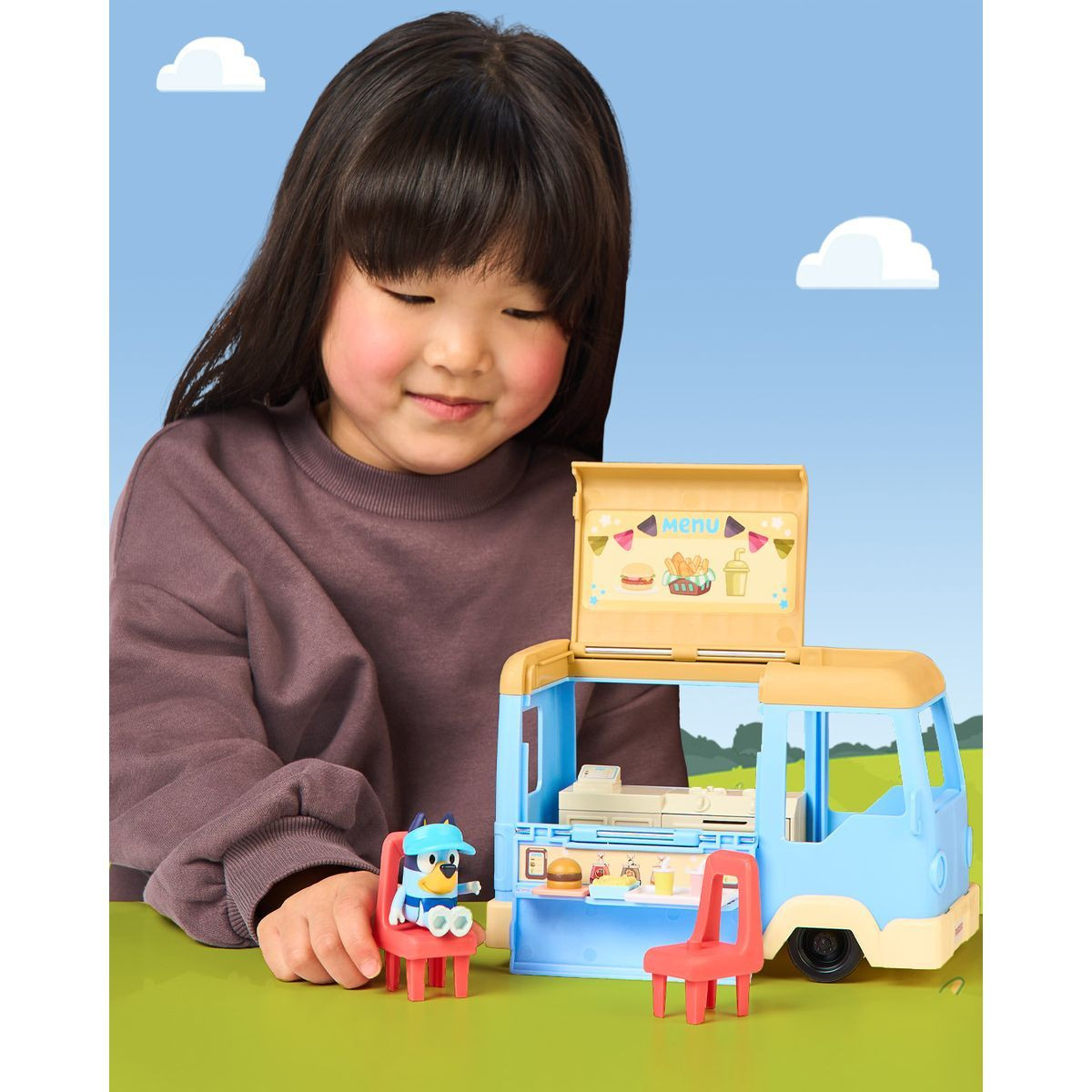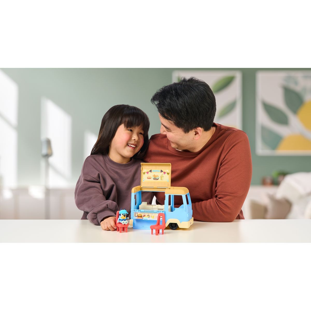With the Bluey Canteen playset, kids can imagine endless adventures as Bluey takes over her own interactive food truck and prepares delicious treats for her friends!