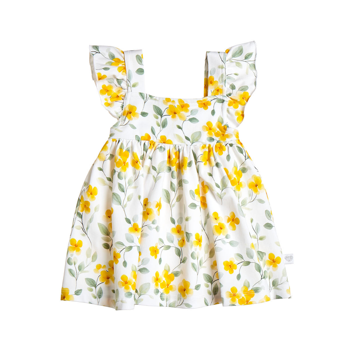 Dress and briefs with floral pattern and matching hair band.
