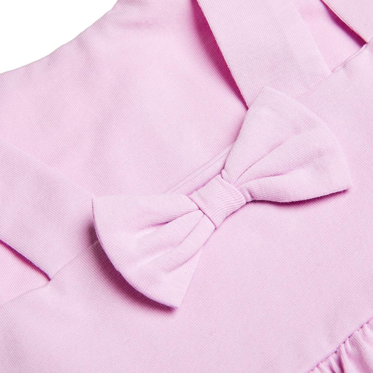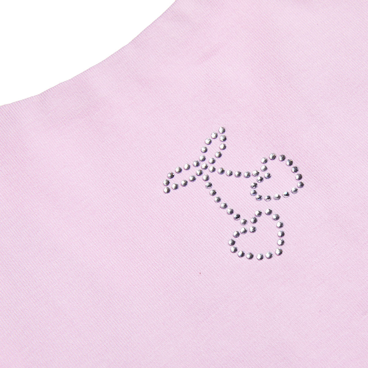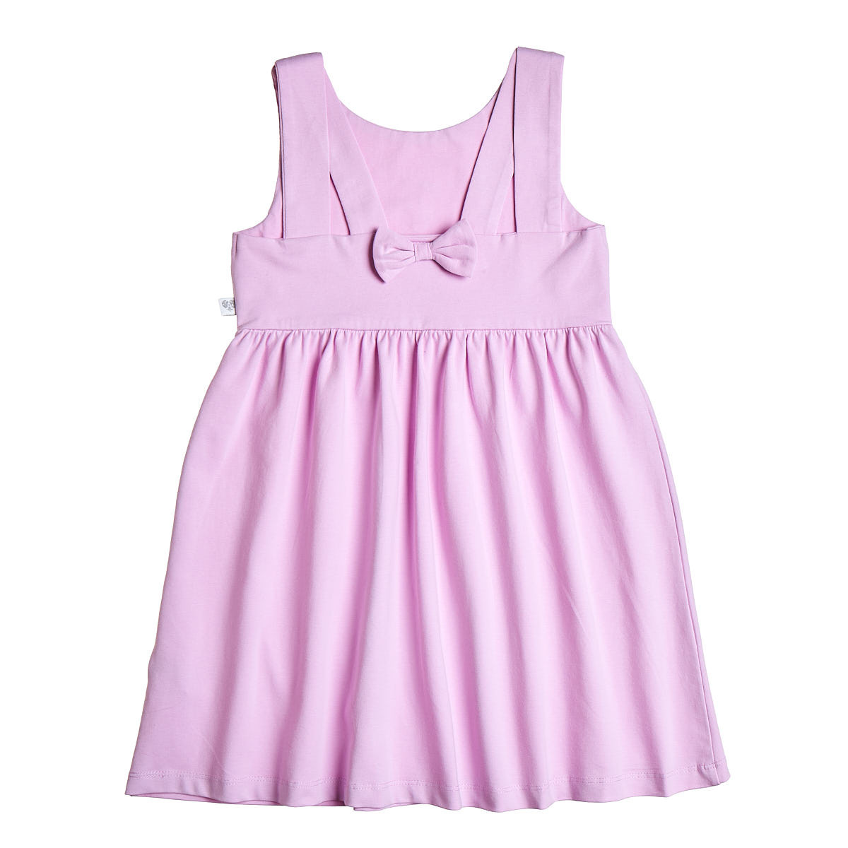 Dress with embroidered detail on the front, decorated with rhinestones and a bow on the back.