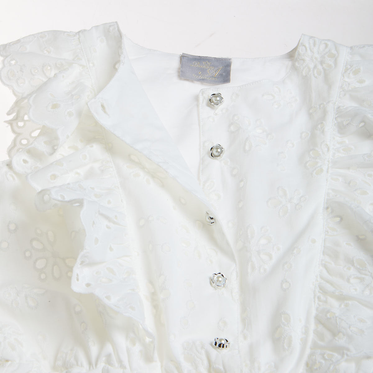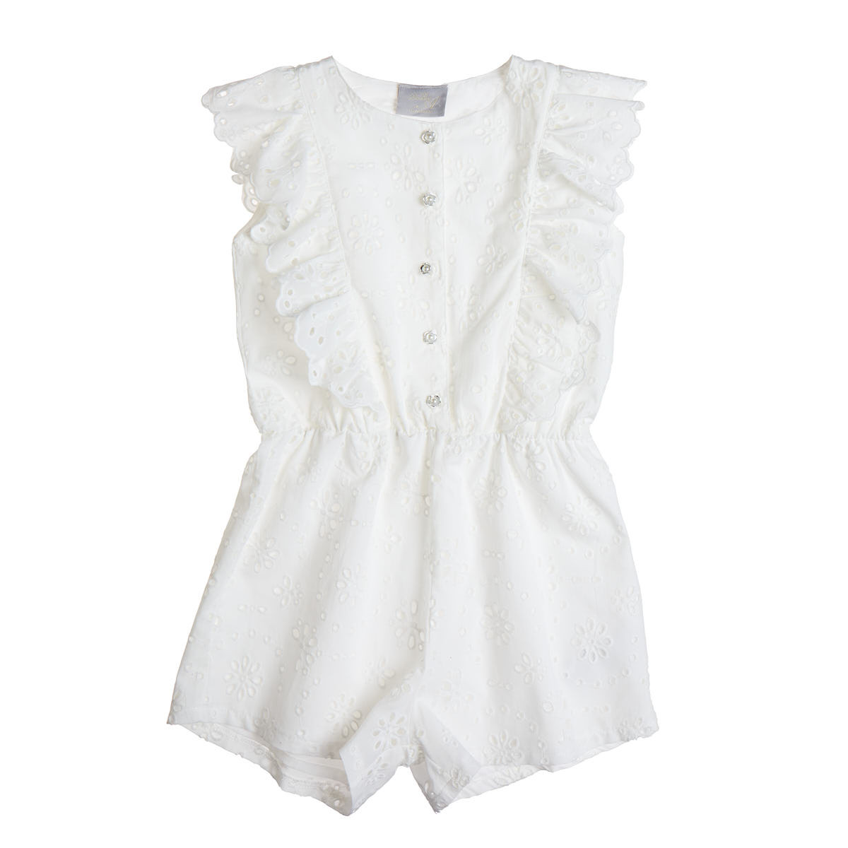 One-piece shorts jumpsuit, made of 100% cotton fabric and perforated embroidery.