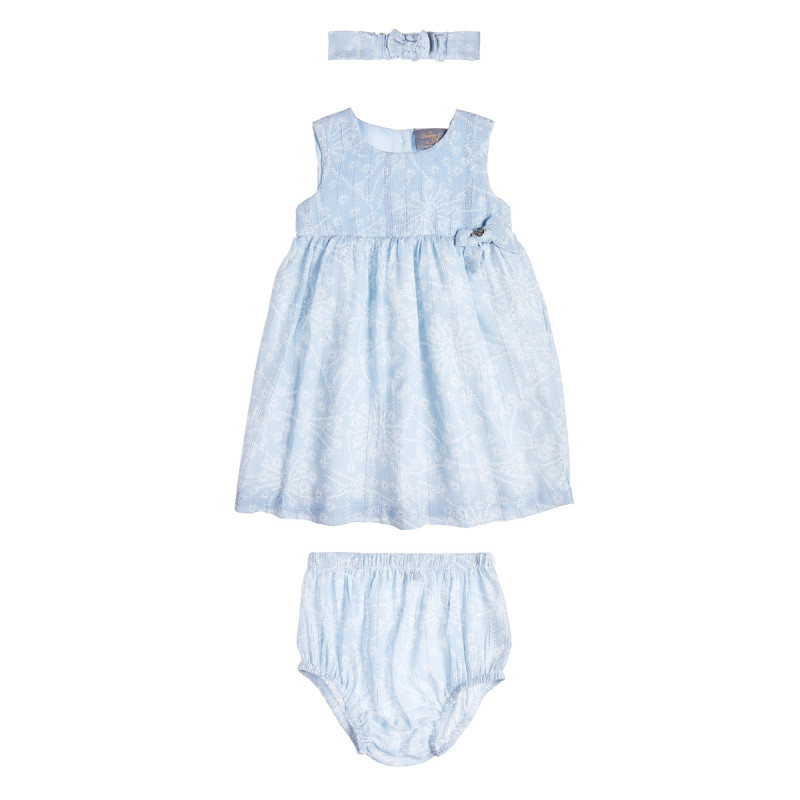 Dress made of airy cotton fabric with viscose and metallic thread that gives a subtle shine.