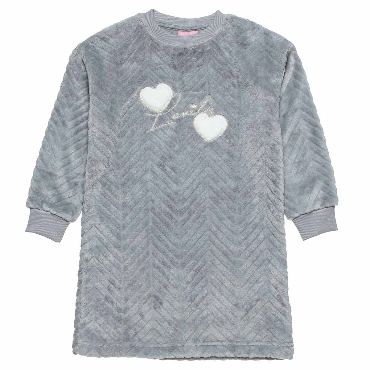 Dress with an extremely soft fluffy texture and embroidery on the front.