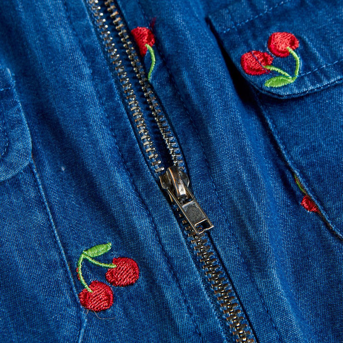 Front zipper, two pockets and embroidered details all over.
