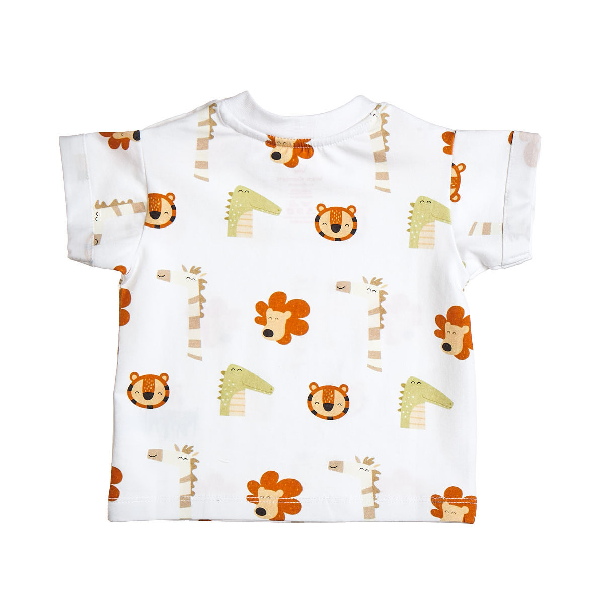 The top has a pattern, a round neckline and snaps on the shoulder for easier changing of the baby.