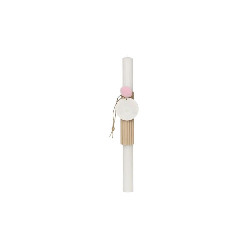 Make-A-Wish Easter Candle with decorative rainbow and pom pom.