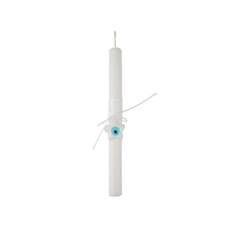 A candle full of symbolism. The star represents the wish and the dream, while the eye functions as a symbol of protection and positive energy.