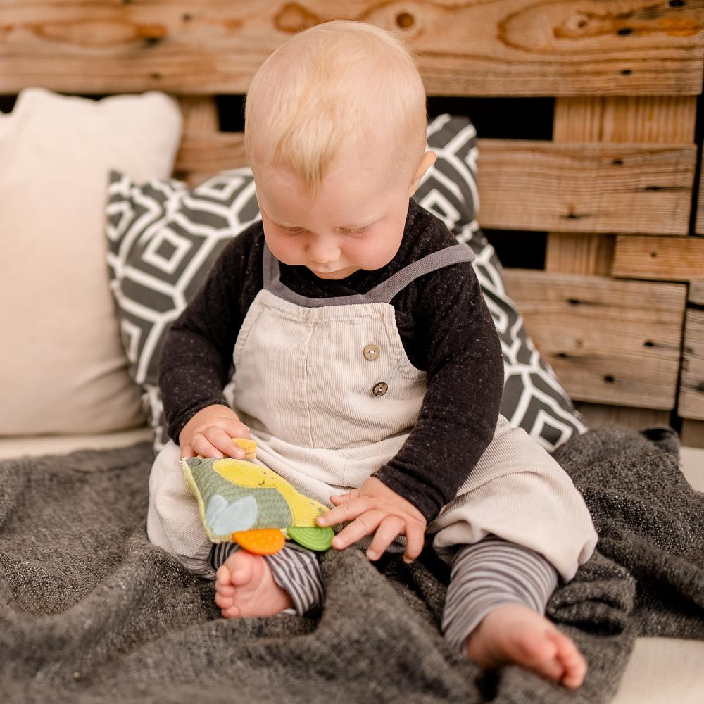The small volcano from the Happy Dino collection invites baby to touch, feel, rattle and squeak and thus encourages baby's spirit of discovery.