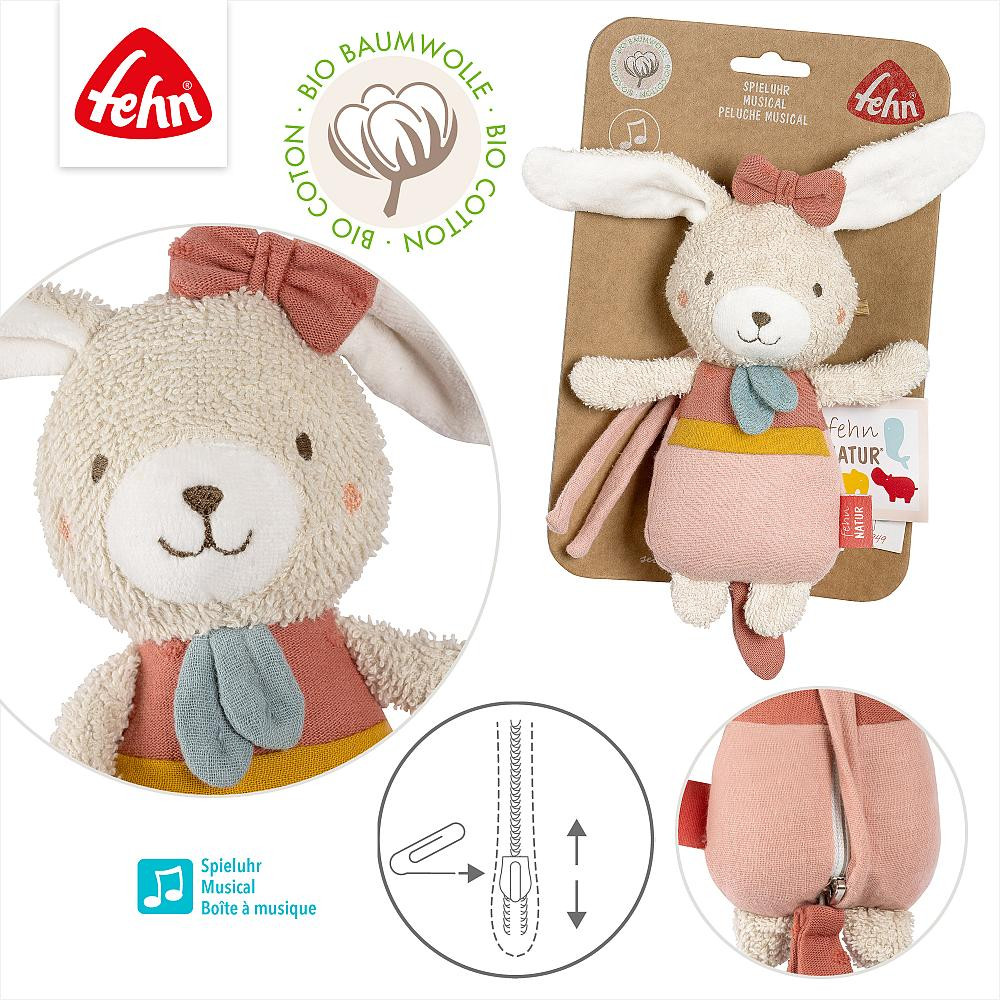 fehnNATUR® musical rabbit plush toy (0+ months).