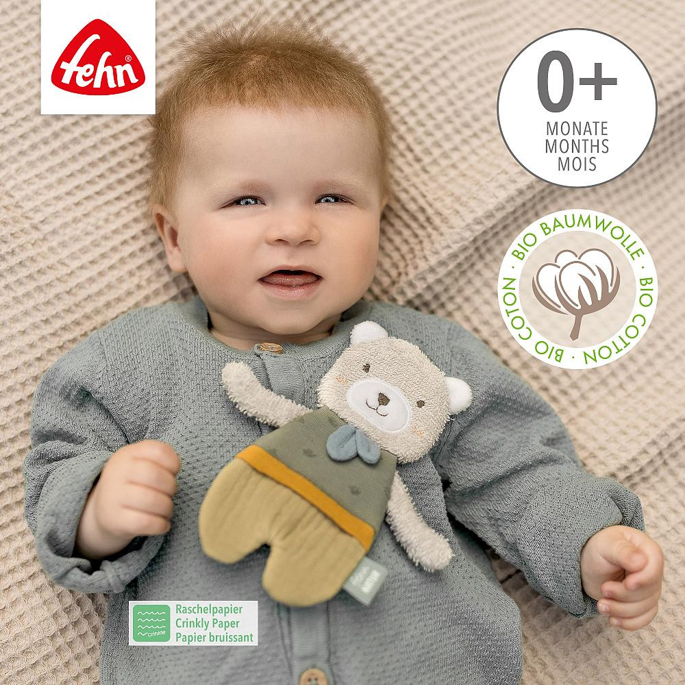 The little teddy bear from the fehnNATUR® collection playfully stimulates the baby's senses and promotes motor skills.