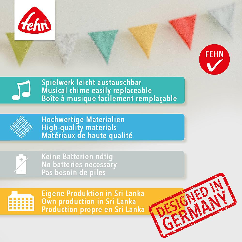 With integrated and removable wind-up music box – Melody: Do you know how many little stars there are – Playing time approx. 1.5 - 2 minutes.