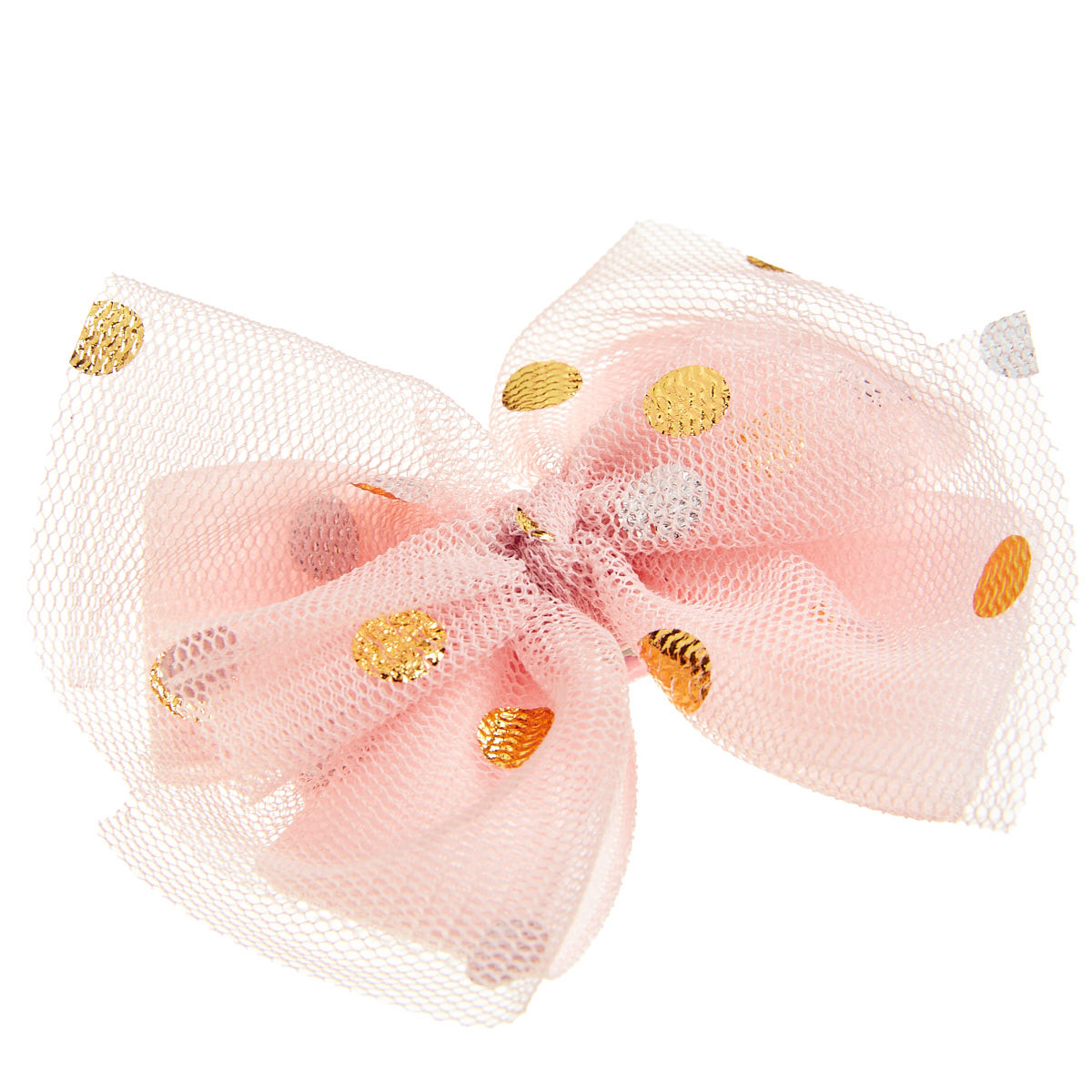 Hair clip with polka dot tulle bow.