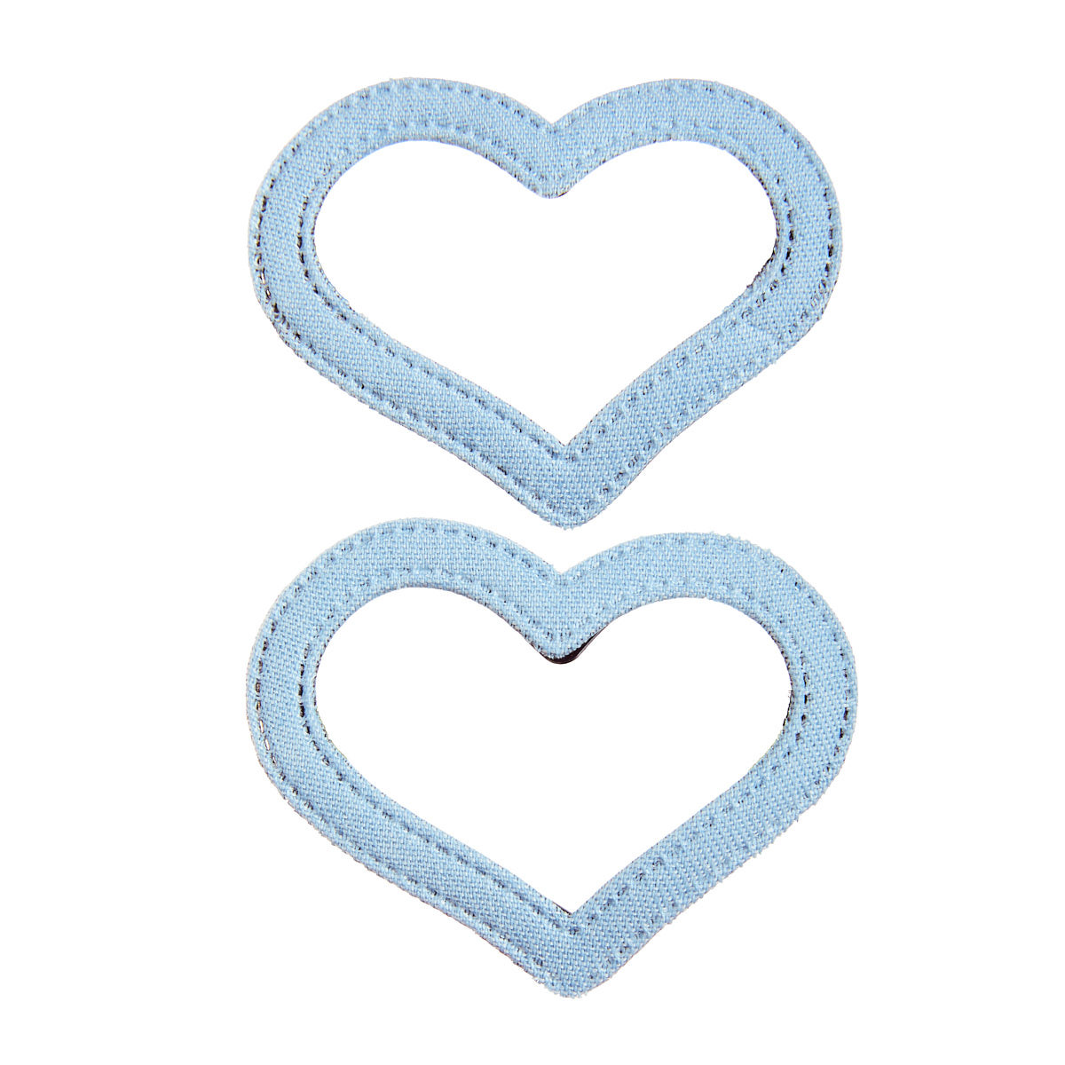 Hair clips, set of 2, covered in denim fabric in the shape of a heart.