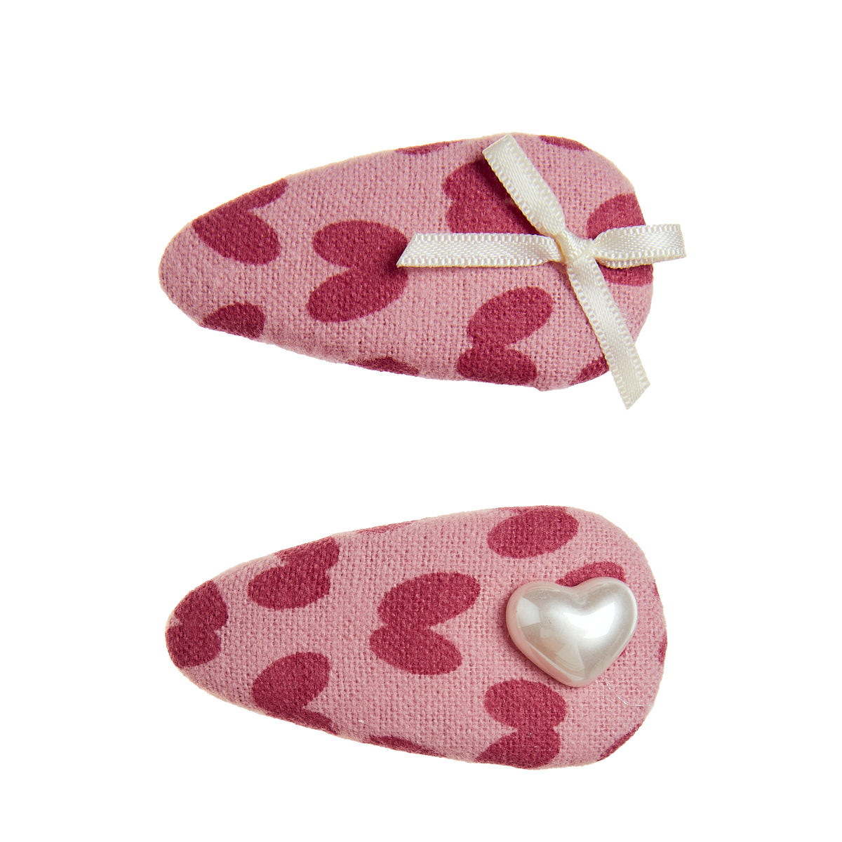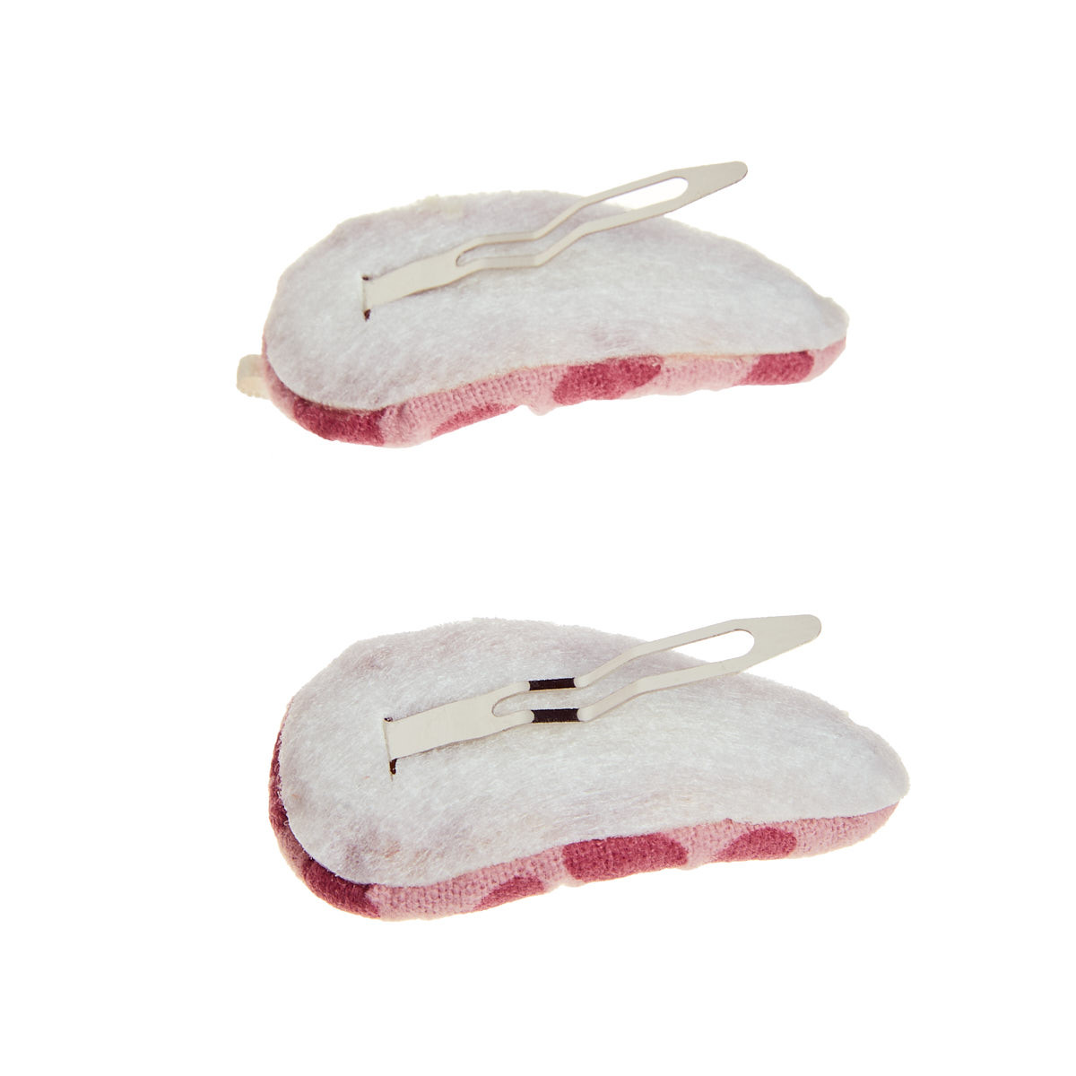Hair clips, set of 2, covered with fabric and decorative elements.