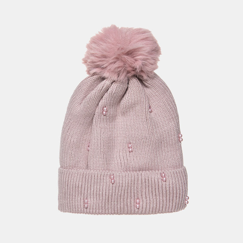 Embellished with pearls and pom poms at the top and a turned rib finish.