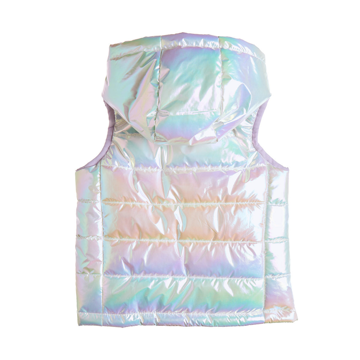 Five Star hooded vest-jacket, slightly puffy with an iridescent look.