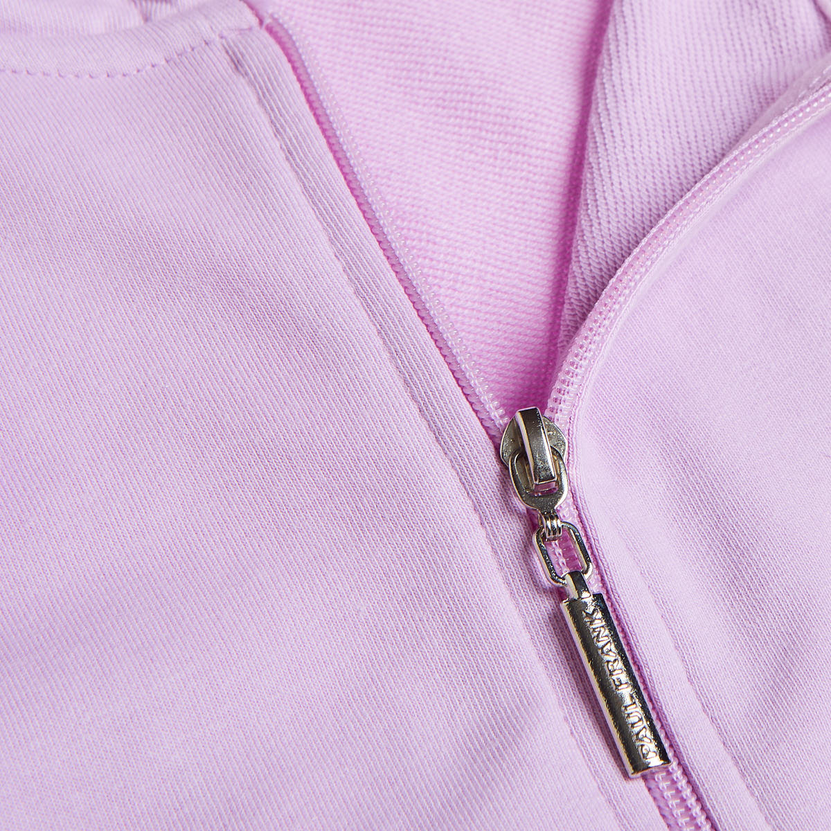 Paul Frank jacket made of lightweight, lint-free sweatshirt fabric, with a striped pattern on the inside of the hood.