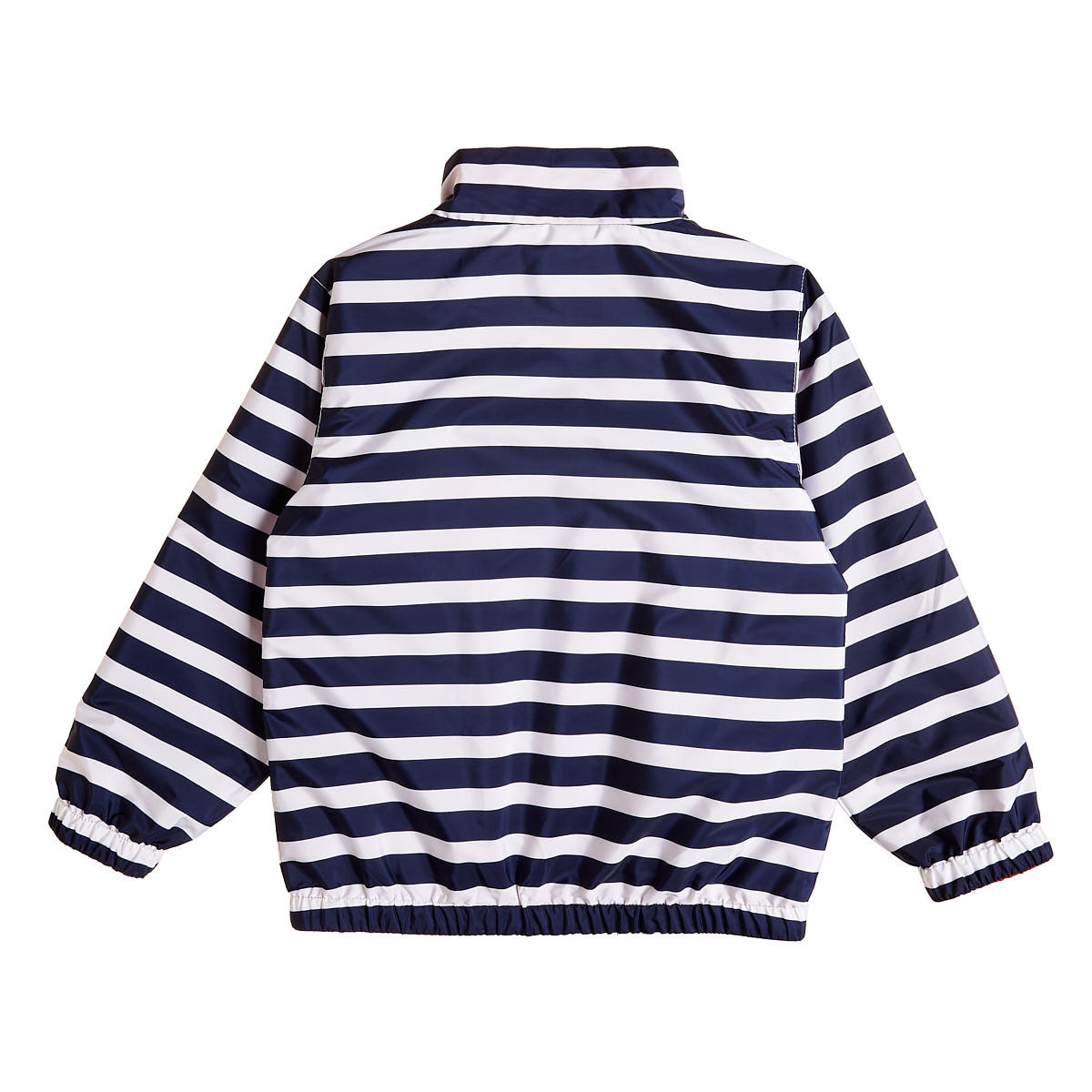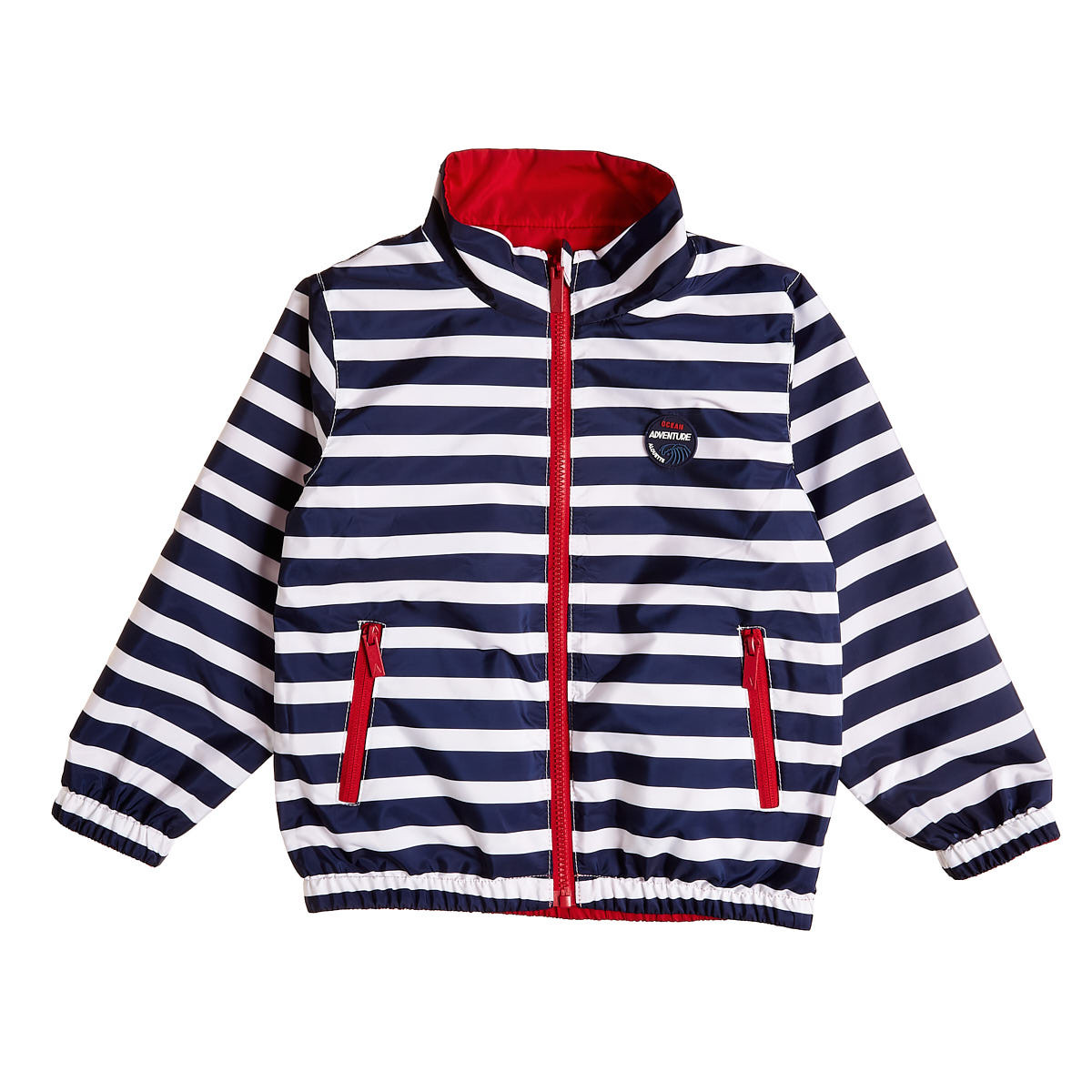 Reversible jacket for boys with zipper and high collar.