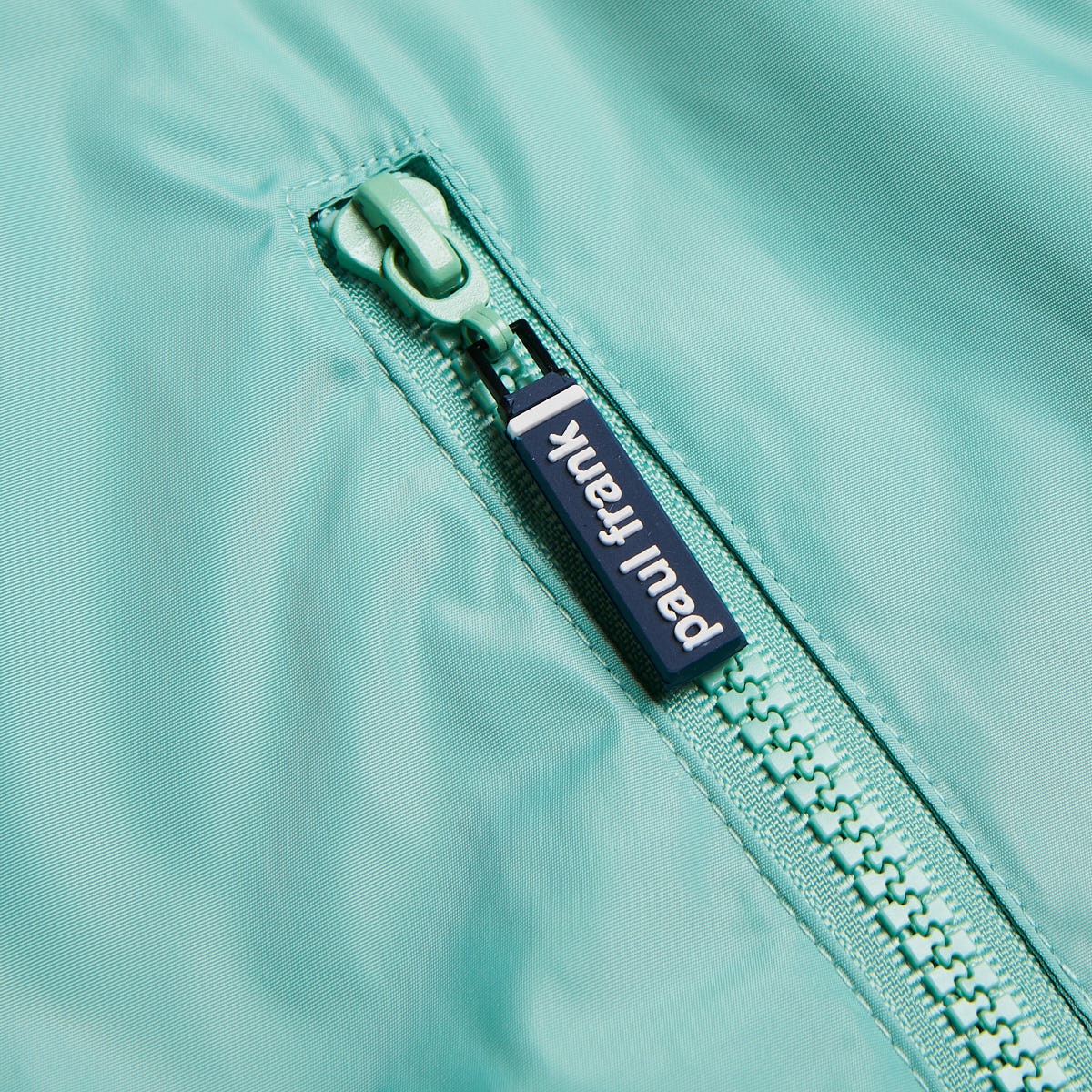 Embroidery on the front and zipper with chin guard.