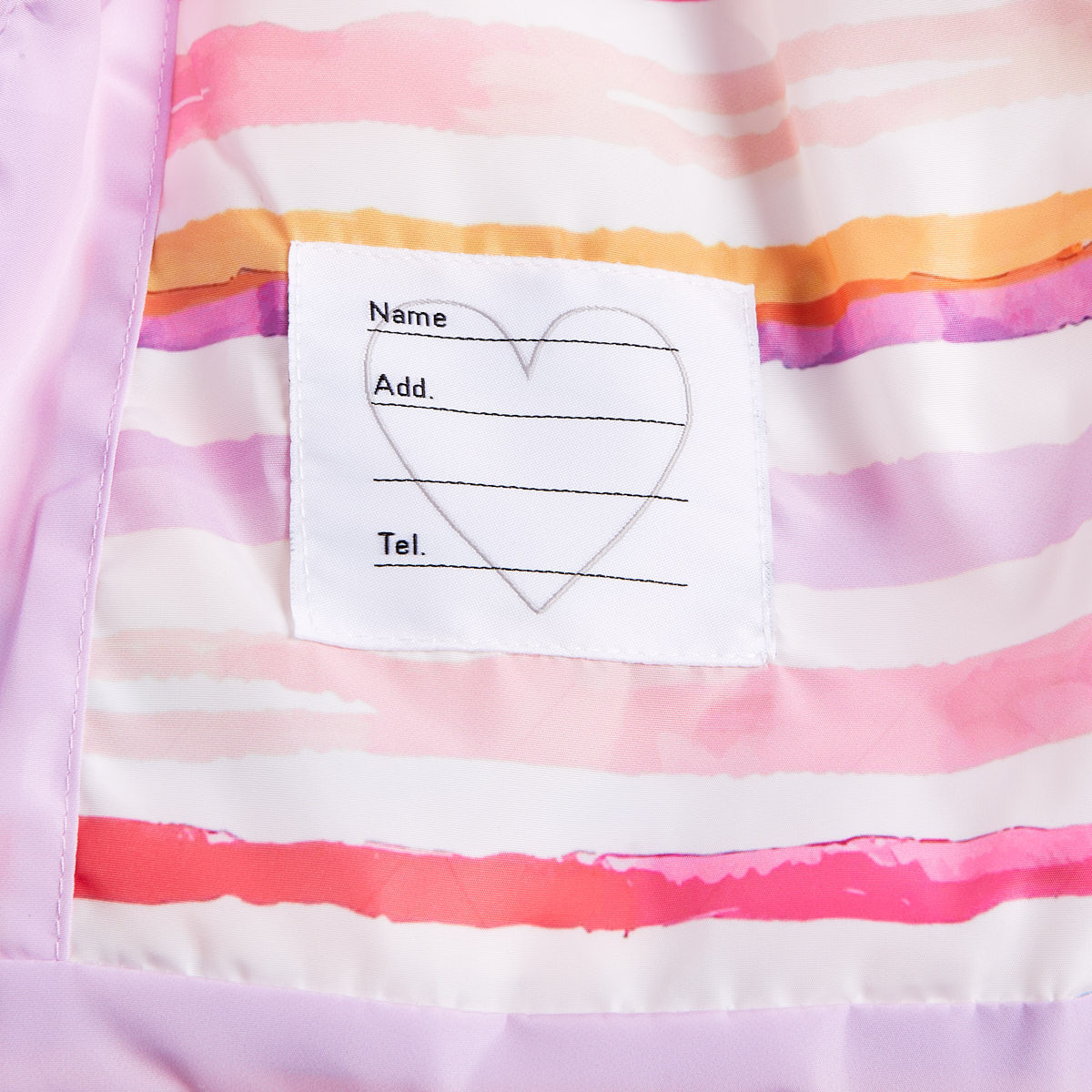 Printed lining and label for the child's name inside.