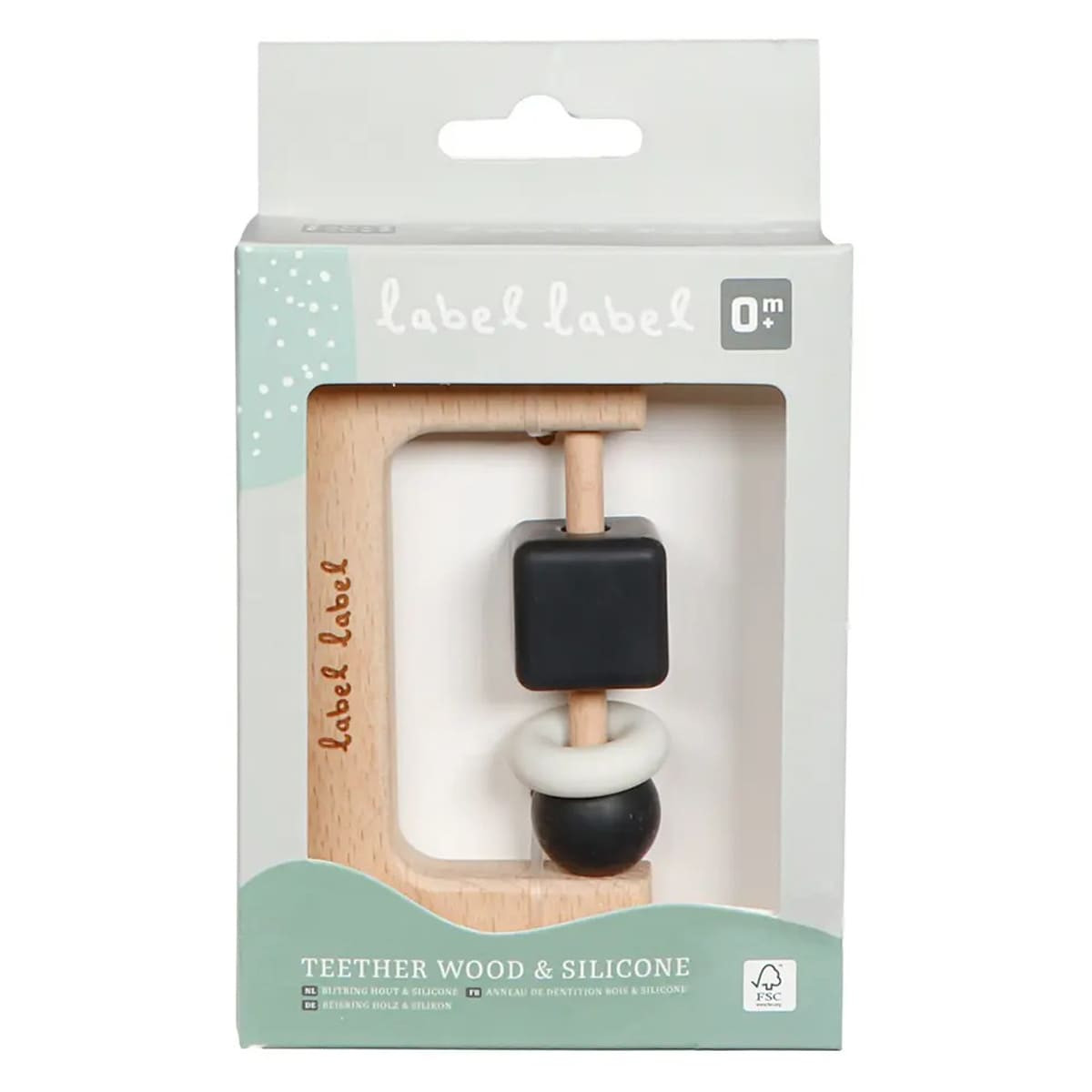 This nice teething ring from Label Label will relieve the pain of teething. The teething ring is made of wood and silicone and looks nice!