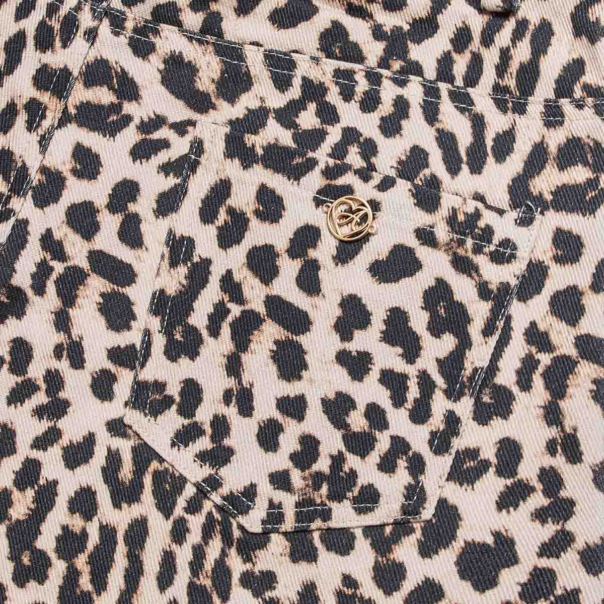100% cotton denim pants for girls, with animal print and front and back pockets.