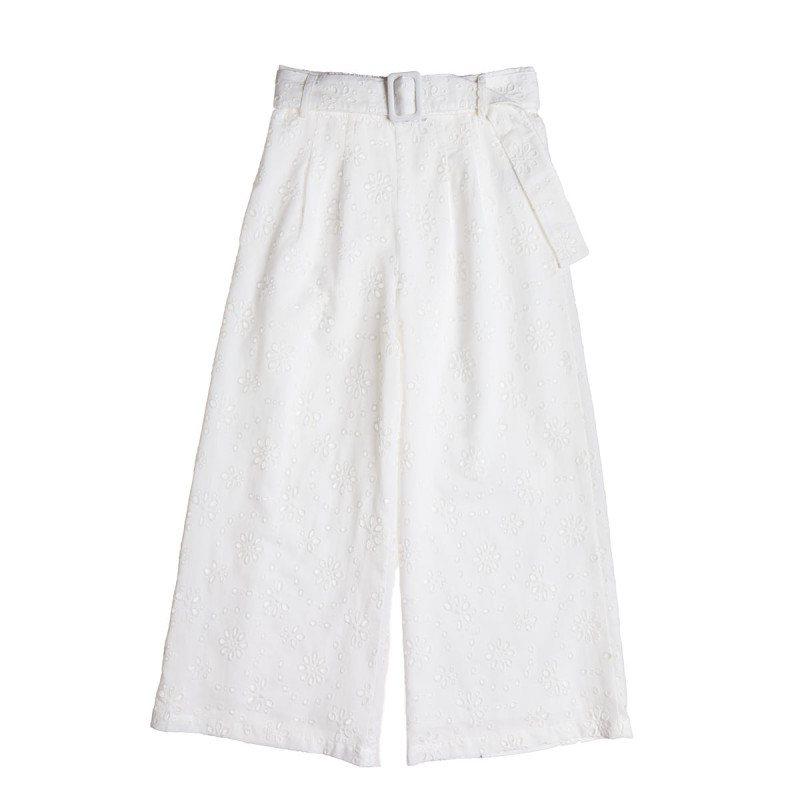 Wide leg pants for girls, made of 100% cotton fabric and perforated embroidery.