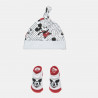 Cotton set consisting of blouse and dungarees made of soft cotton fabric. The t-shirt has short sleeves and a collar. Bib overalls made of extremely soft denim fabric, with practical press buttons on the sides and straps and a zippered opening at the bottom for easier changing of the baby. It is an easy choice for everyday wear that will offer comfort... }