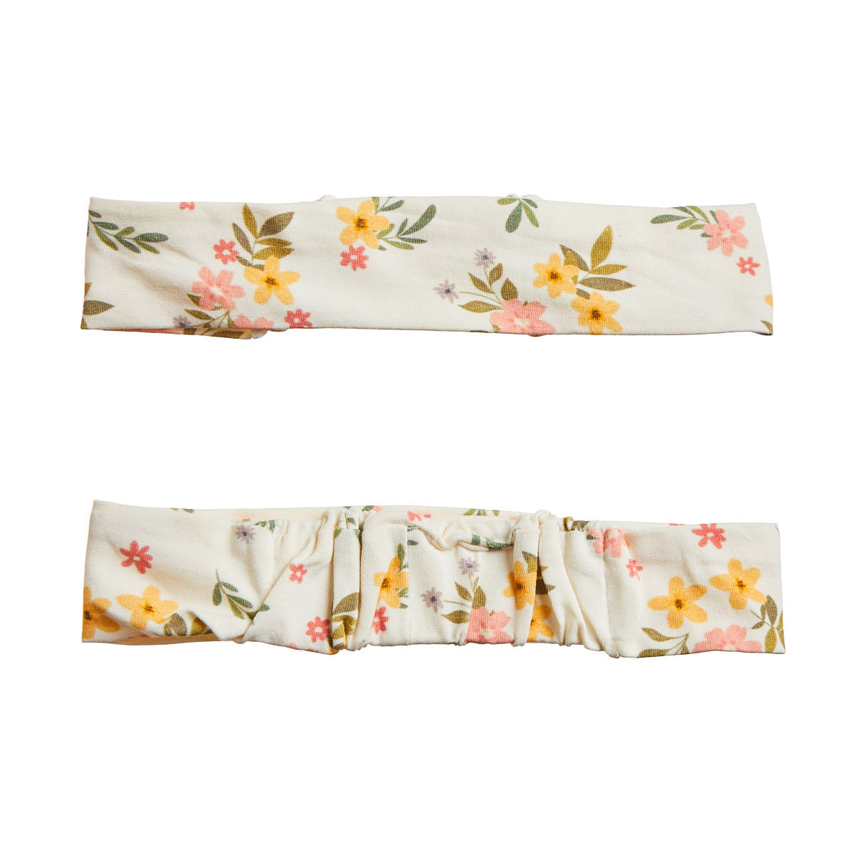 Briefs with matching pattern and elastic with ruching around the perimeter.