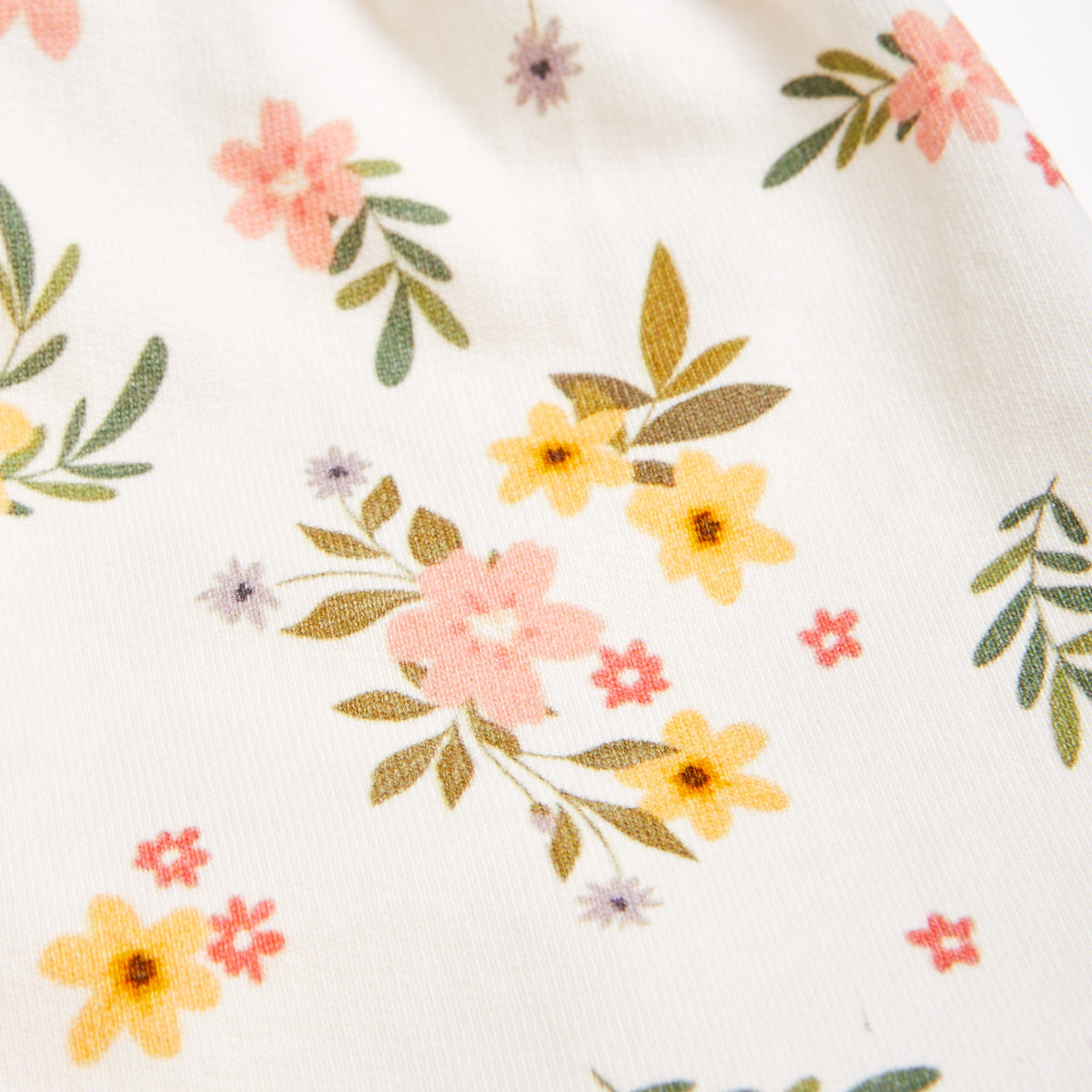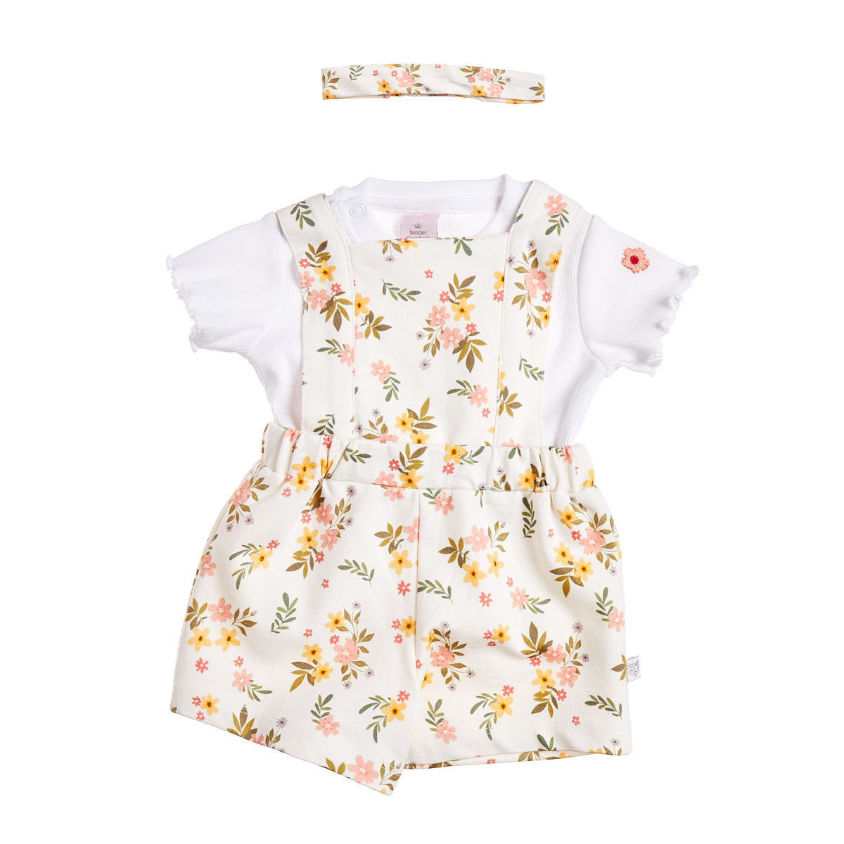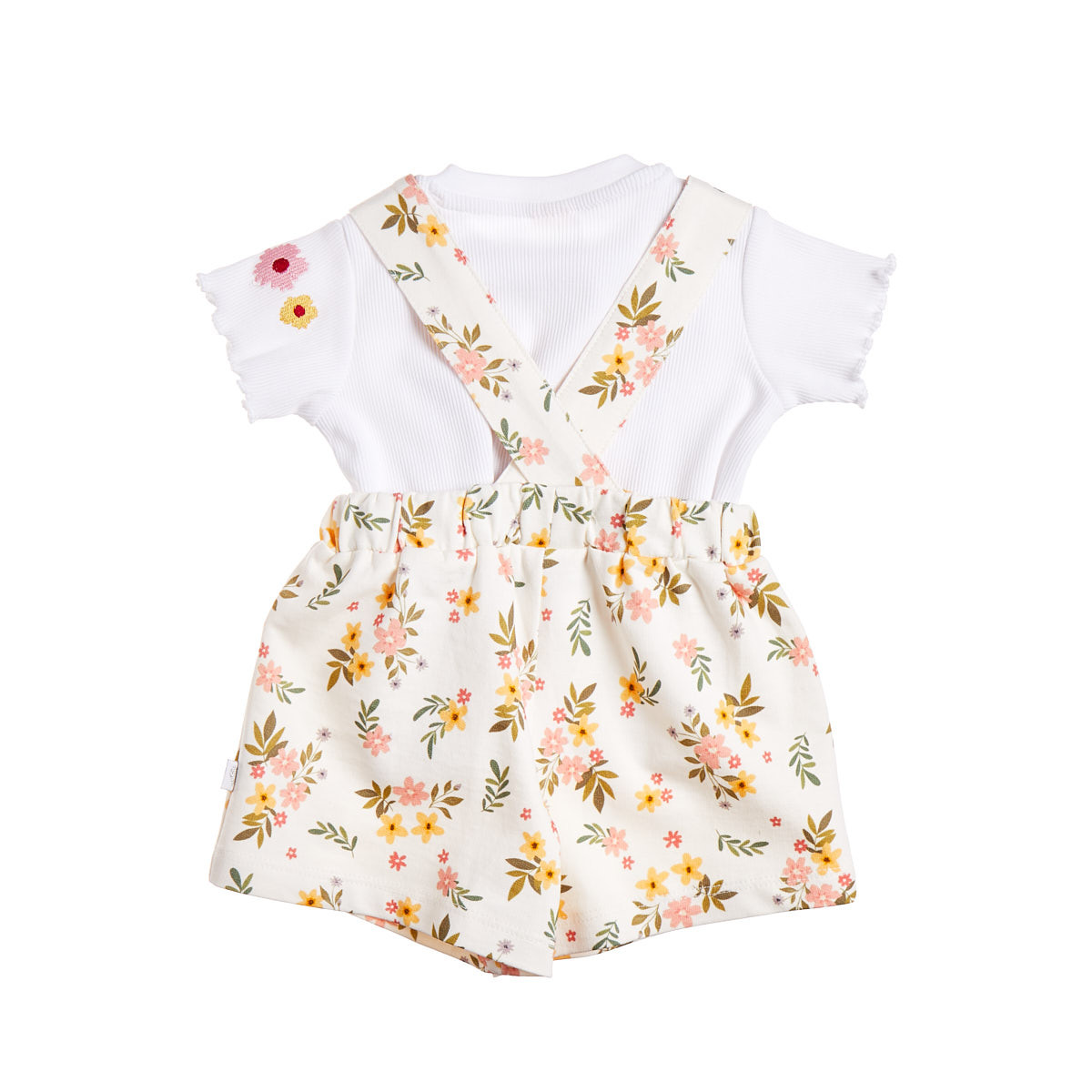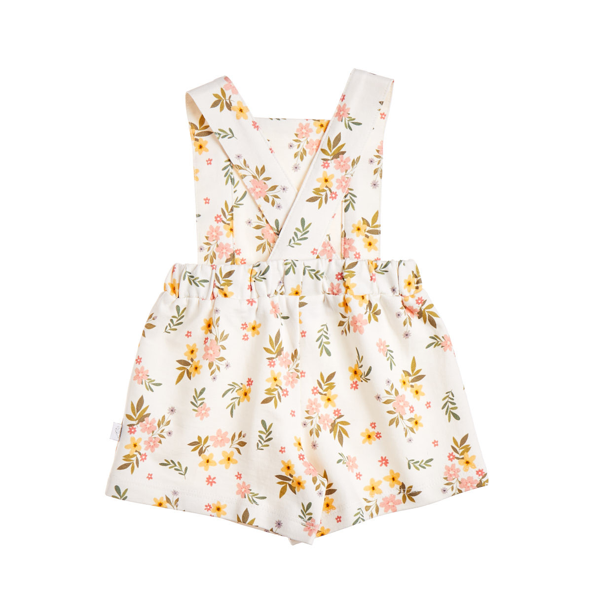 Cotton jumpsuit with floral pattern and crisscross straps at the back.