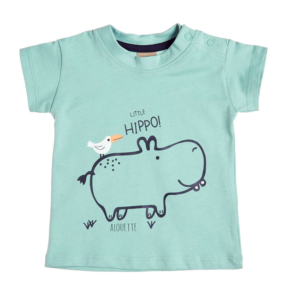 Shirt with press studs on the shoulder for practical and comfortable everyday use and print on the front.