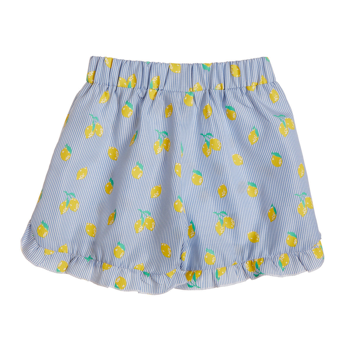 Shorts with an impressive lemon pattern, elastic waist and ruffled hem.