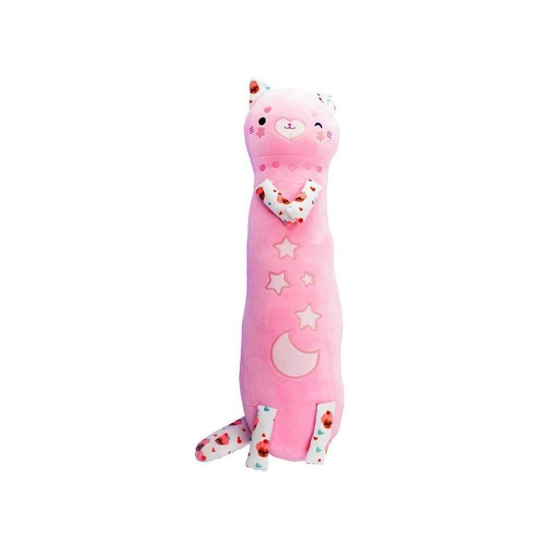 Soft plush cat-shaped pillow, Kawaii style, ideal for hugs, 60 cm long.