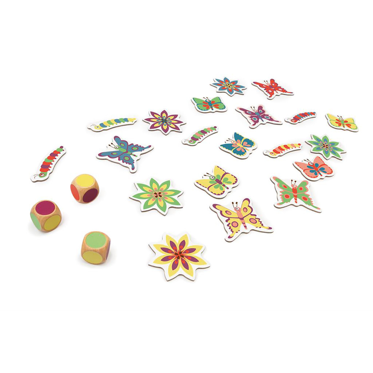 Roll the 3 dice and look for a butterfly, flower or caterpillar with these colors.