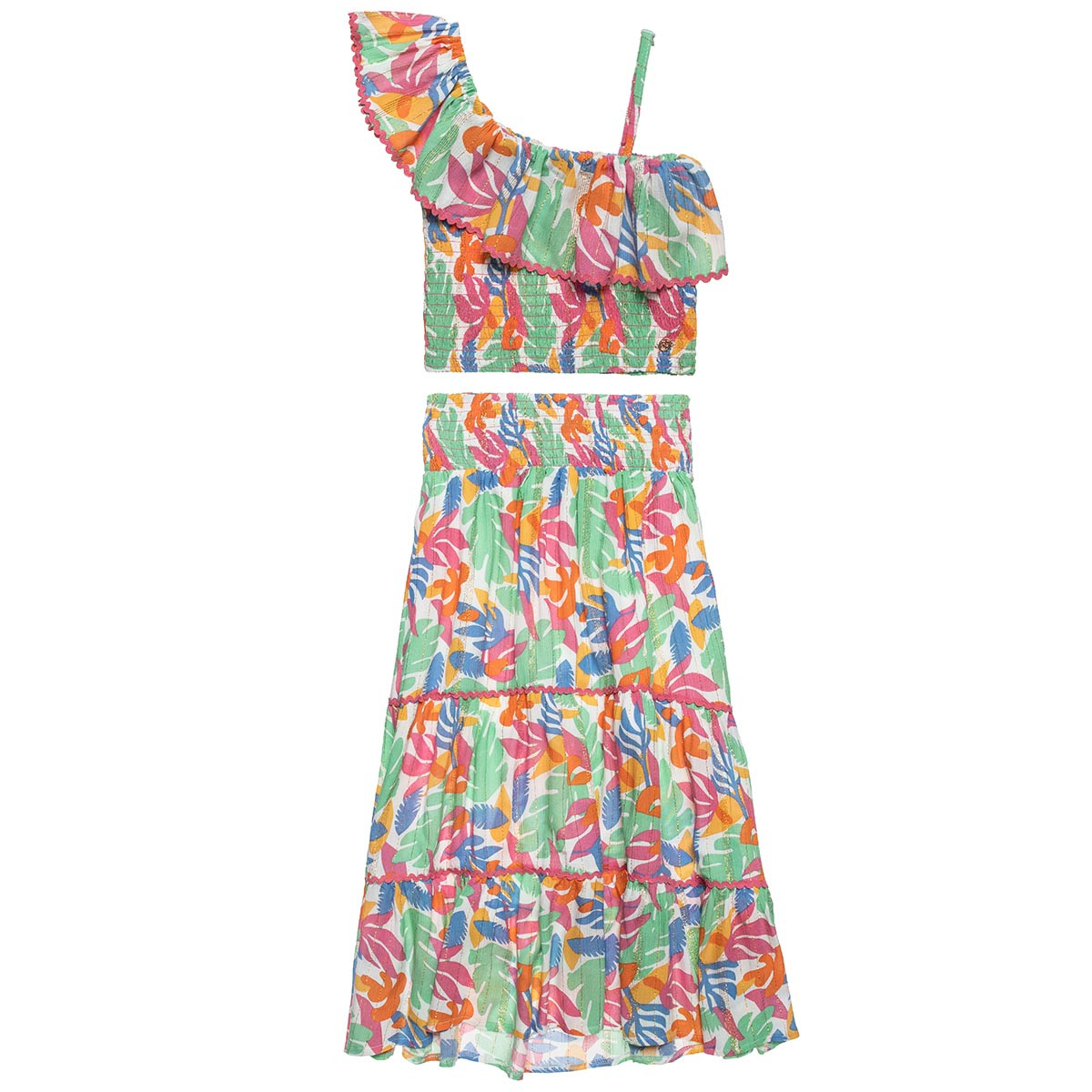 Set with a floral pattern consisting of a cropped blouse and a maxi skirt.