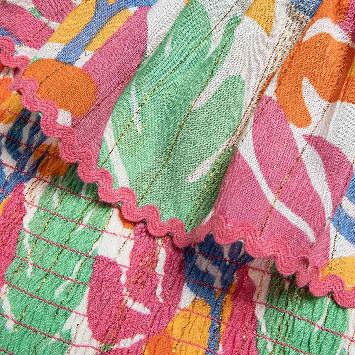Cropped blouse with ruffles on the top, metallic thread and wasp nest.