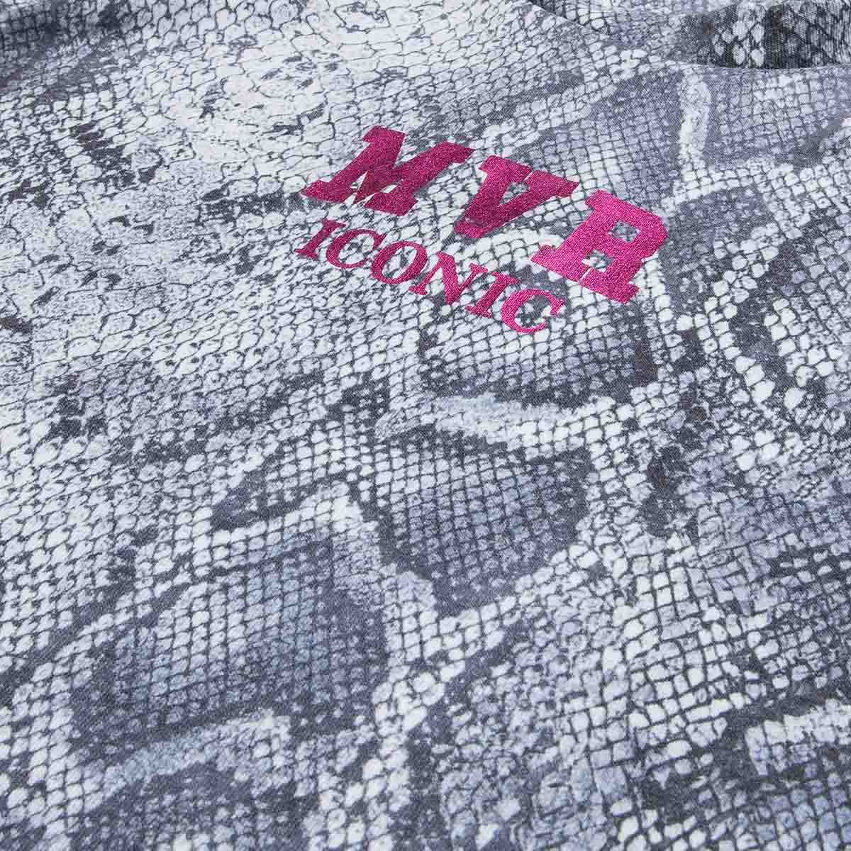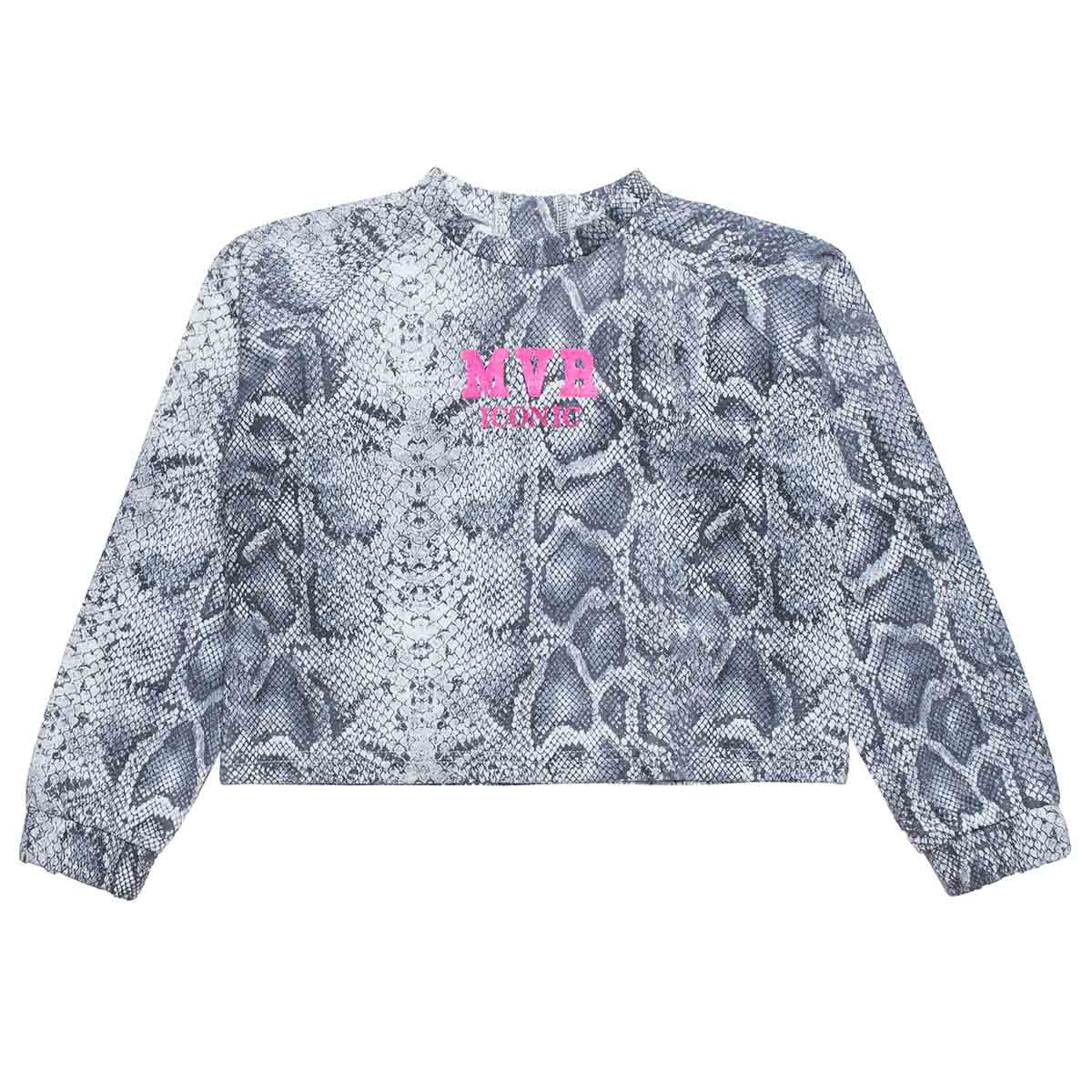 Blouse with metallic shiny print on the front, shiny buttons on the back, elastic at the end of the sleeve.