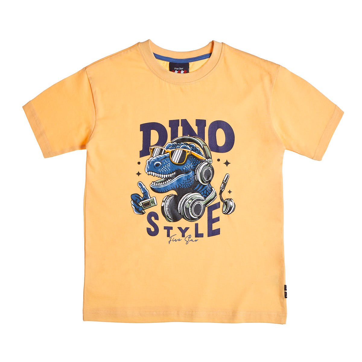 Shirt with an impressive embossed design on the front with a dinosaur theme.