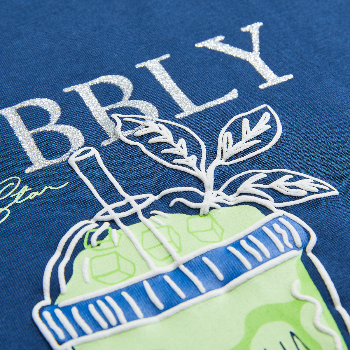 Blouse with an impressive design on the front decorated with glitter and embossed elements.