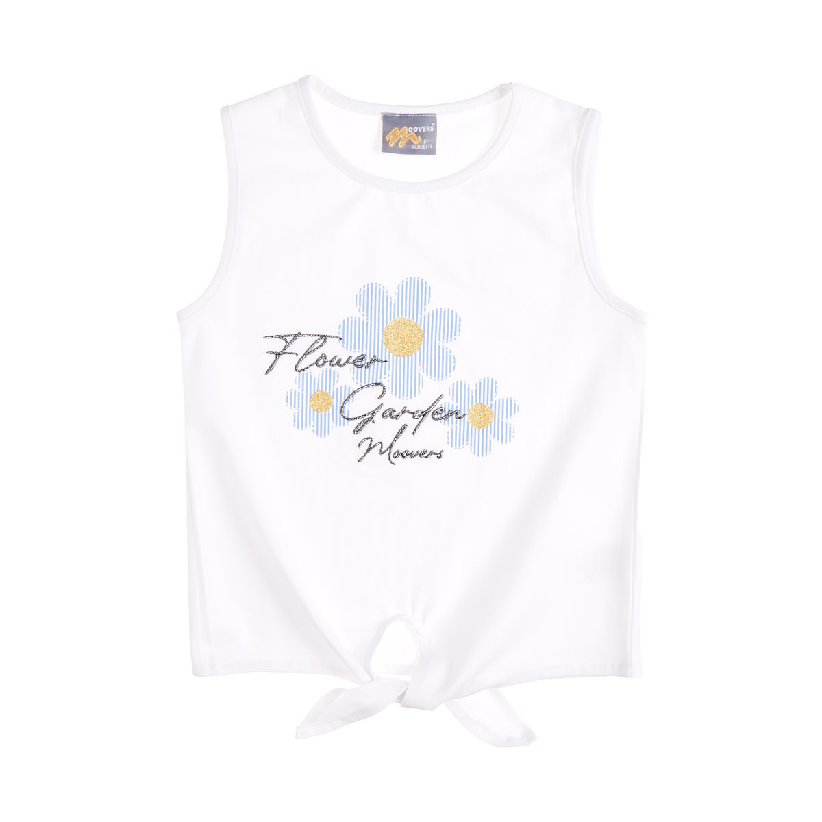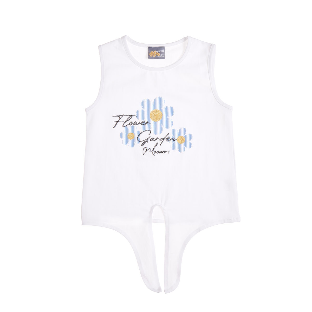 Sleeveless blouse with a tie at the front and an impressive embroidered design.