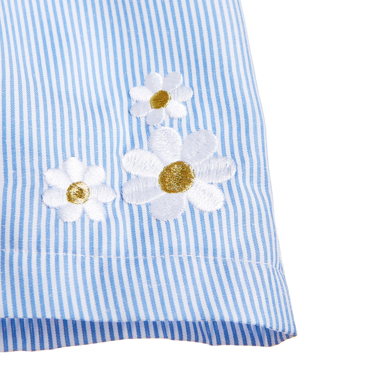 Shorts with a striped pattern and a wide elastic waistband with a ruched detail. Embroidered element at the bottom.