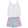 Hello Kitty blouse with ruffles on the sleeves. Print decorated with shiny and embossed elements. }