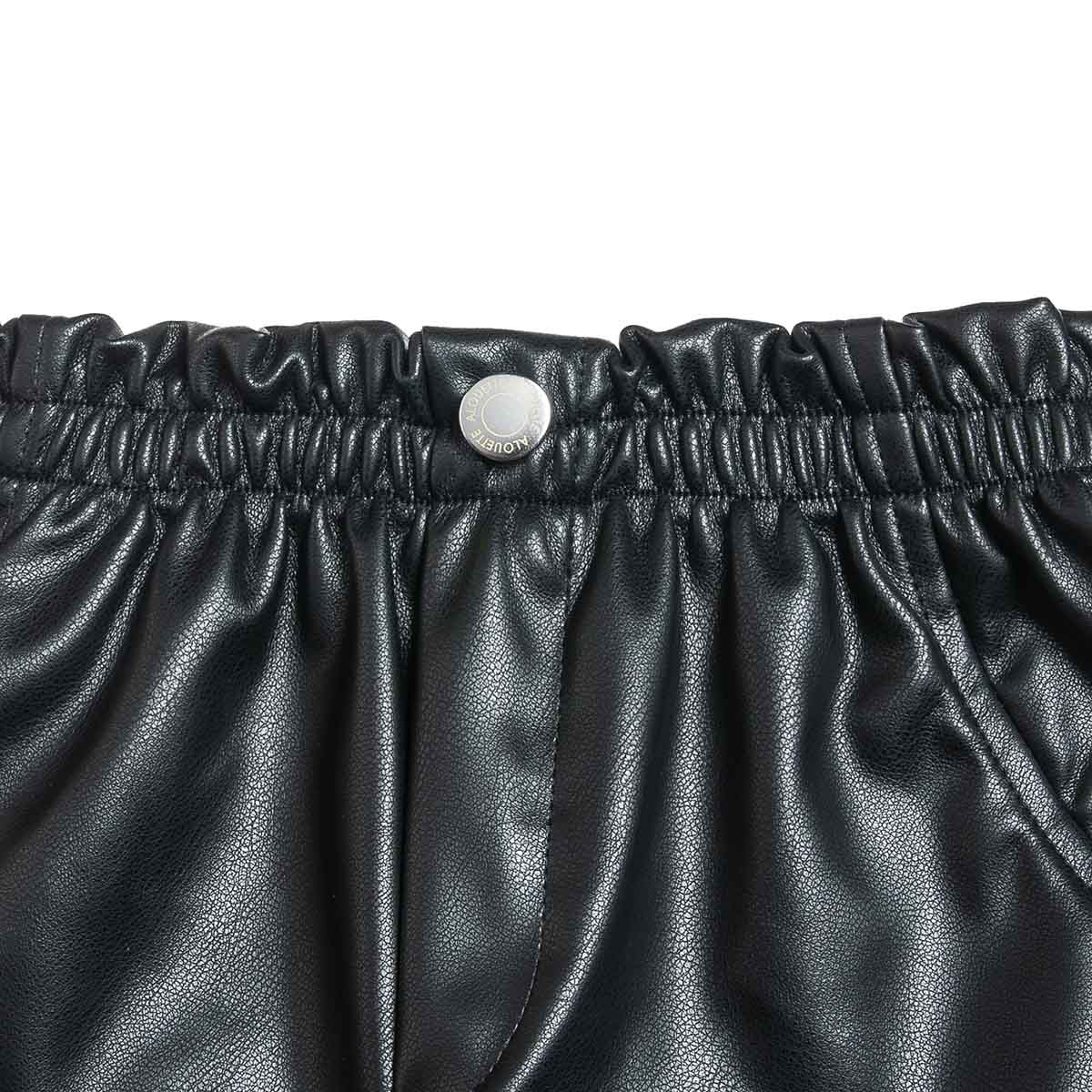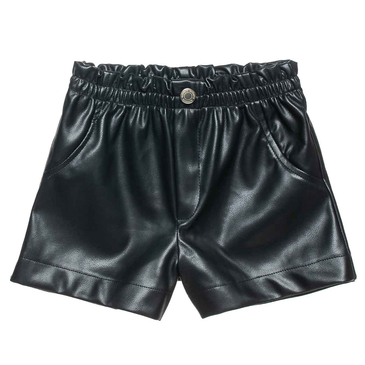 Shorts made of eco-leather with elastic at the waist and decorative button.
