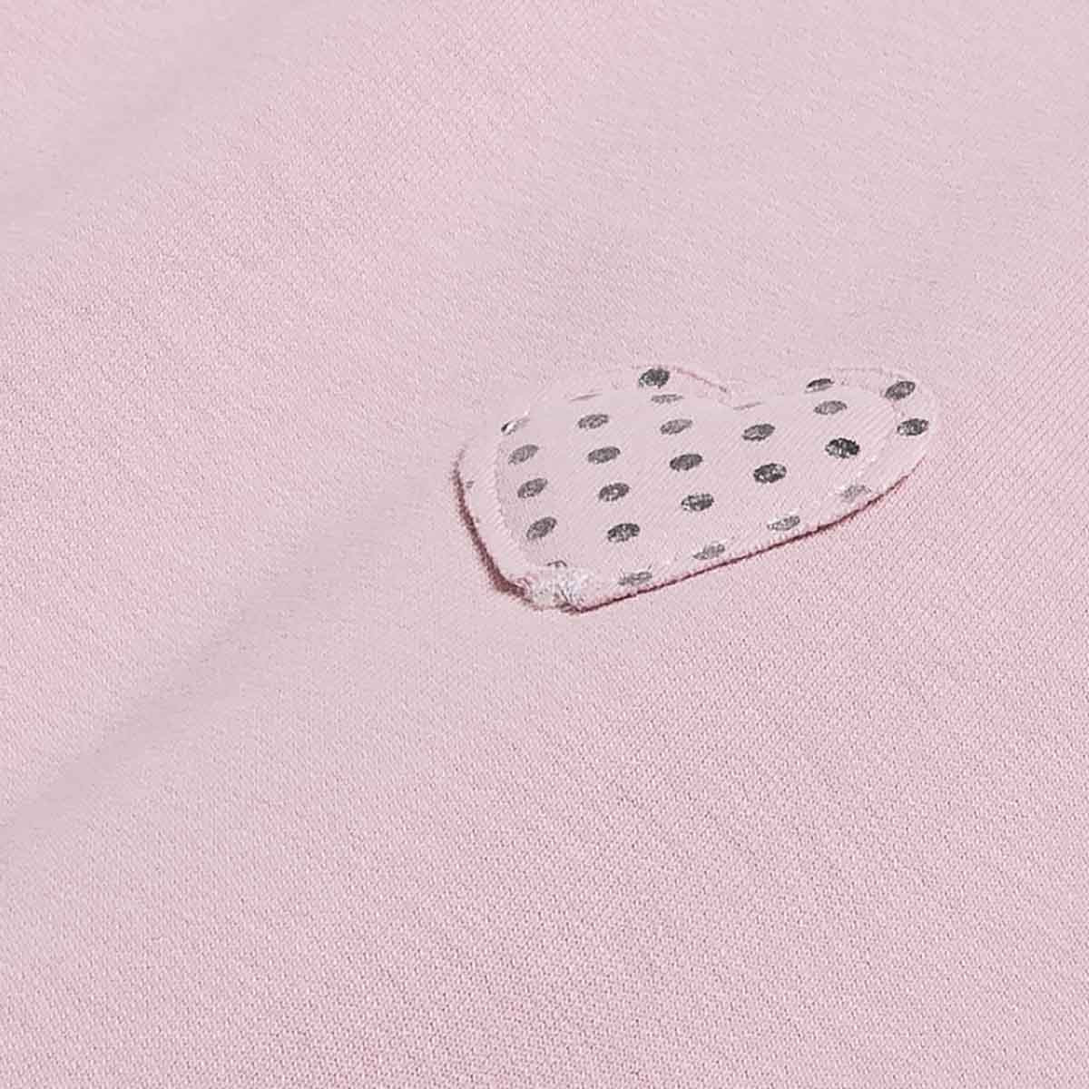 Blouse with quilted design on the sleeves, applique hearts with shiny details and elastic with ruching at the bottom.