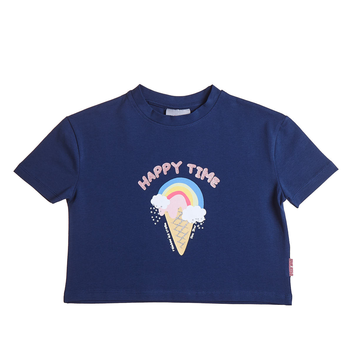Crop top with an impressive print on the front decorated with glitter elements.