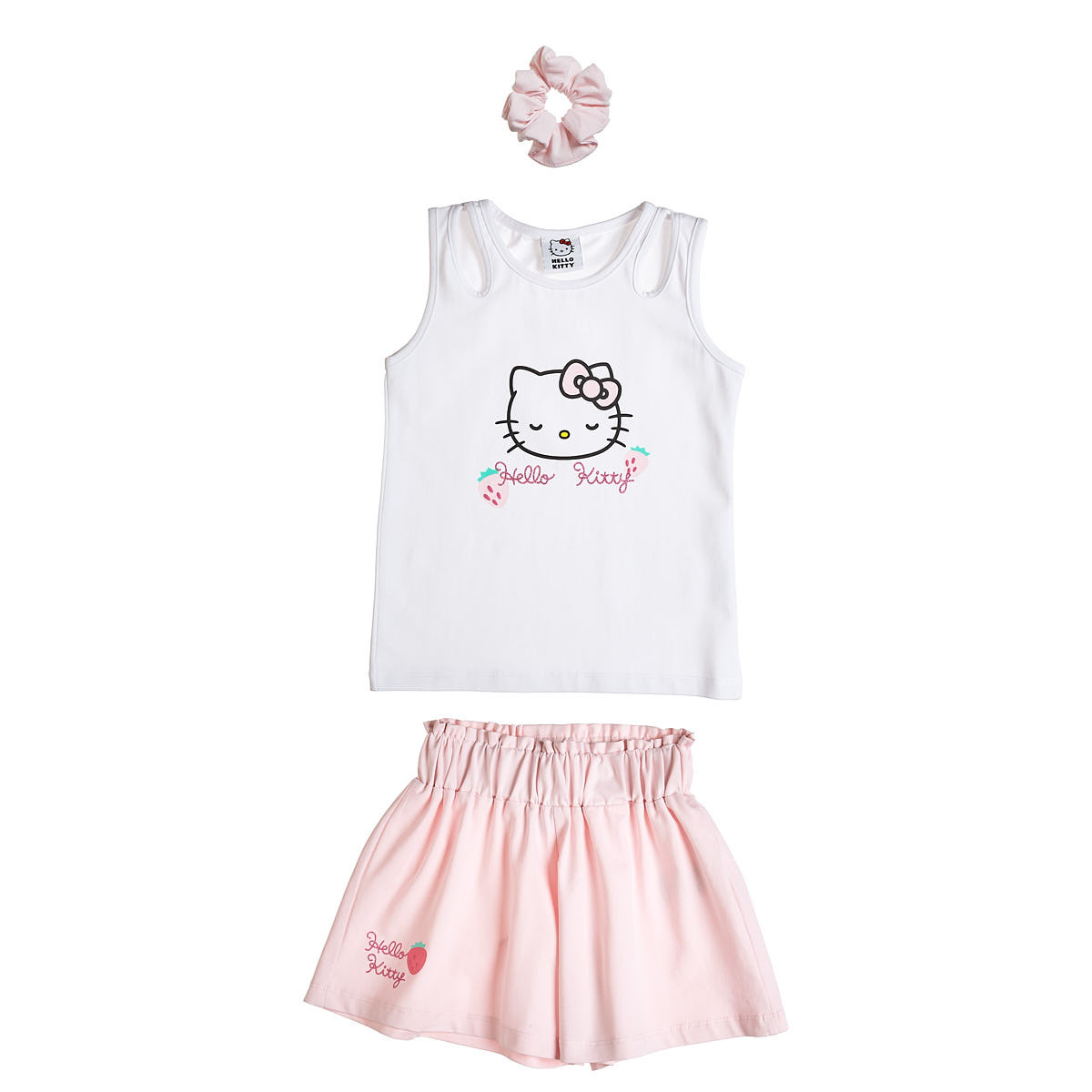 Hello Kitty cotton set consisting of a blouse, shorts and matching scrunchie.