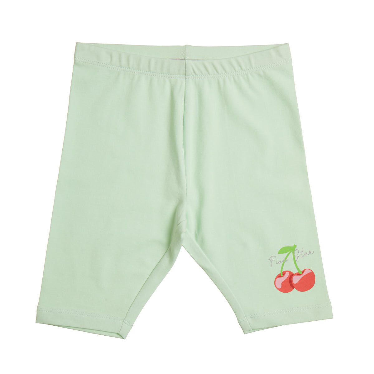 Biker leggings in 2 wonderful summer colors and a print on the leg decorated with glitter.