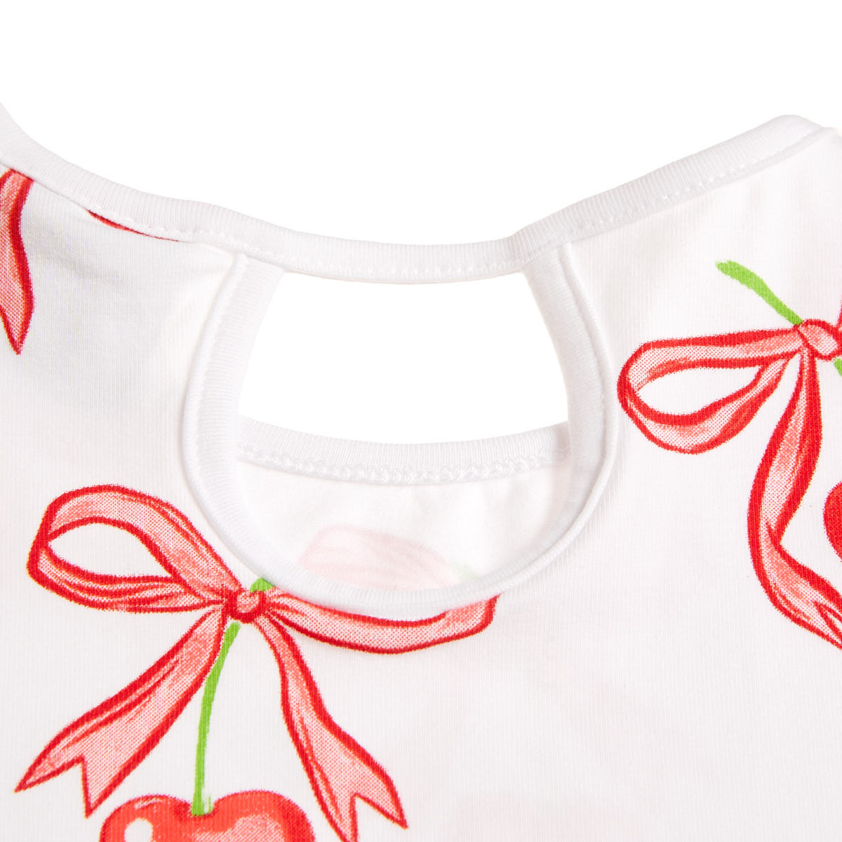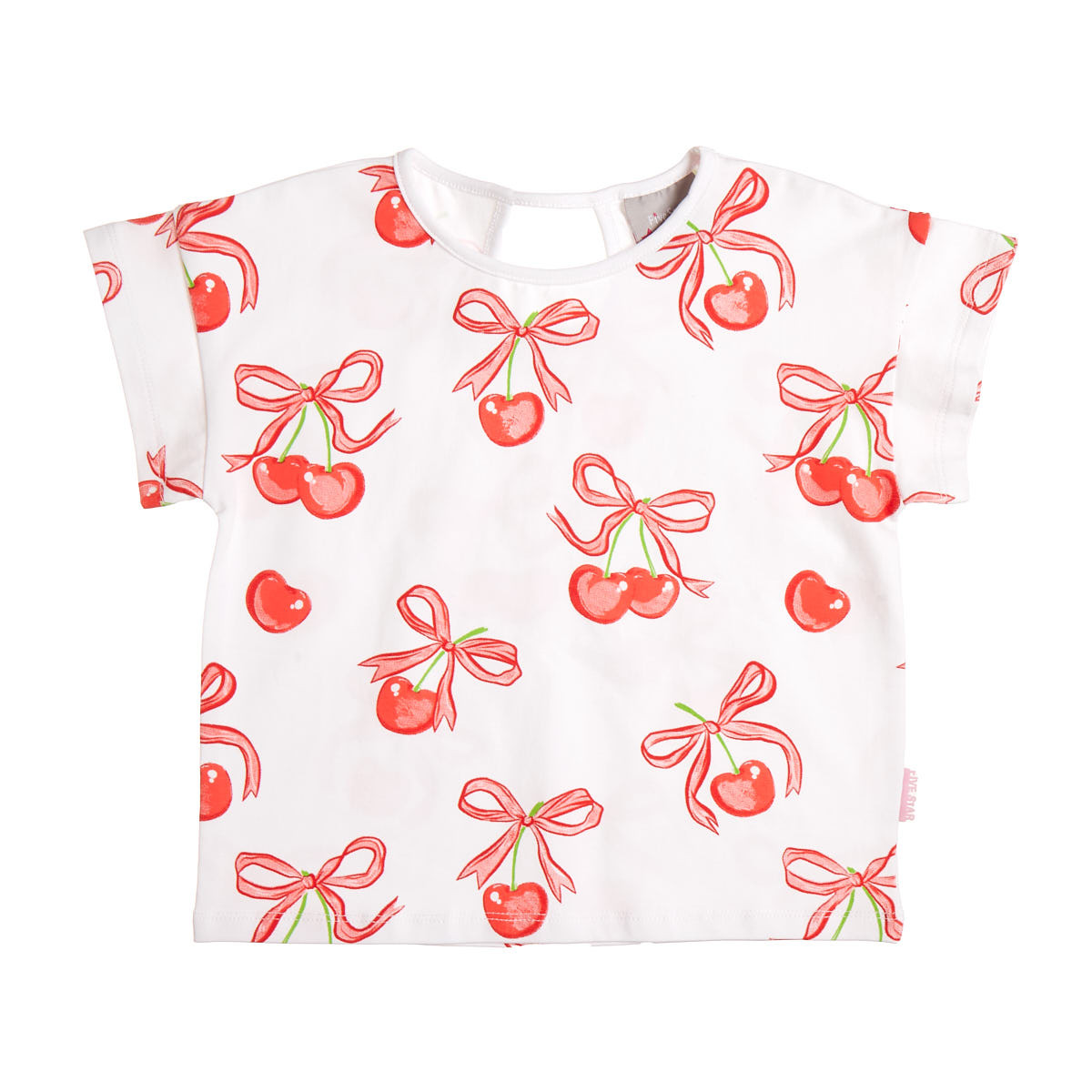 Blouse with an impressive cherry pattern and a small opening in the back.