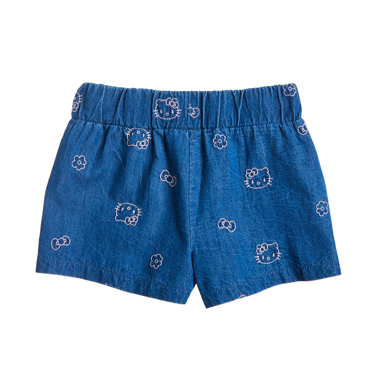 Shorts made of extremely soft denim fabric with elastic at the waist, embroidered pattern and side pockets.